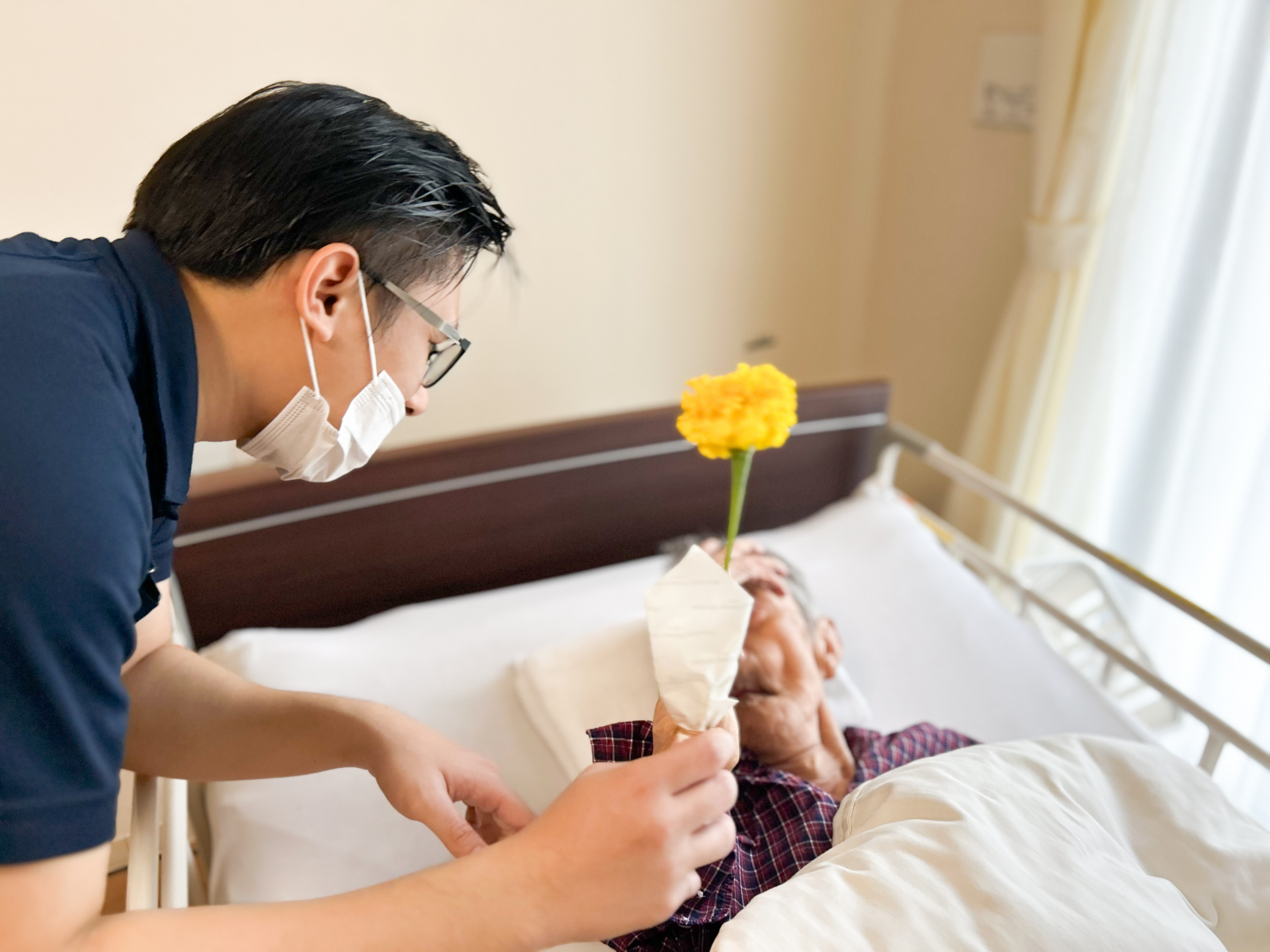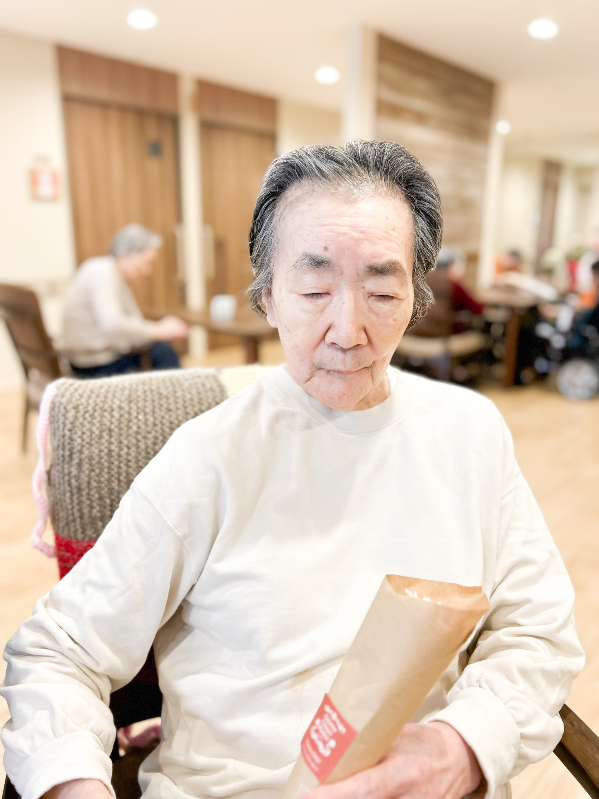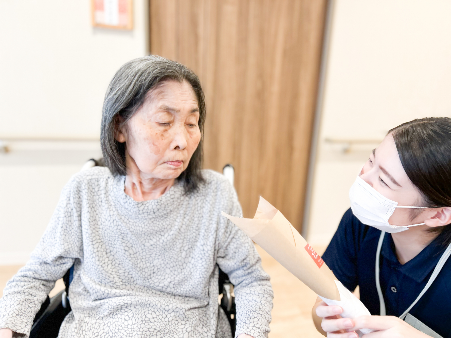 「お花??くれるの?」と職員から受け取り笑顔を見せて下さったりしました(*^^*)