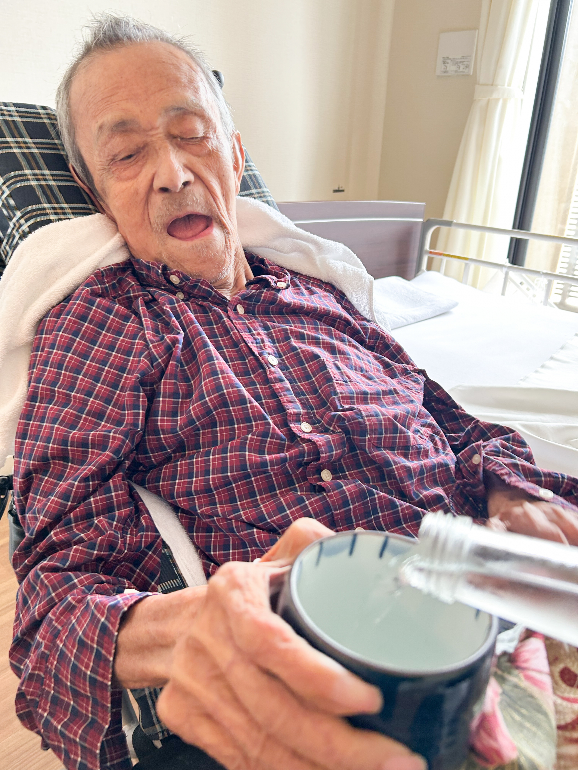 先日はお酒が好きな男性ご入居者様に飲みますか?とお声かけすると