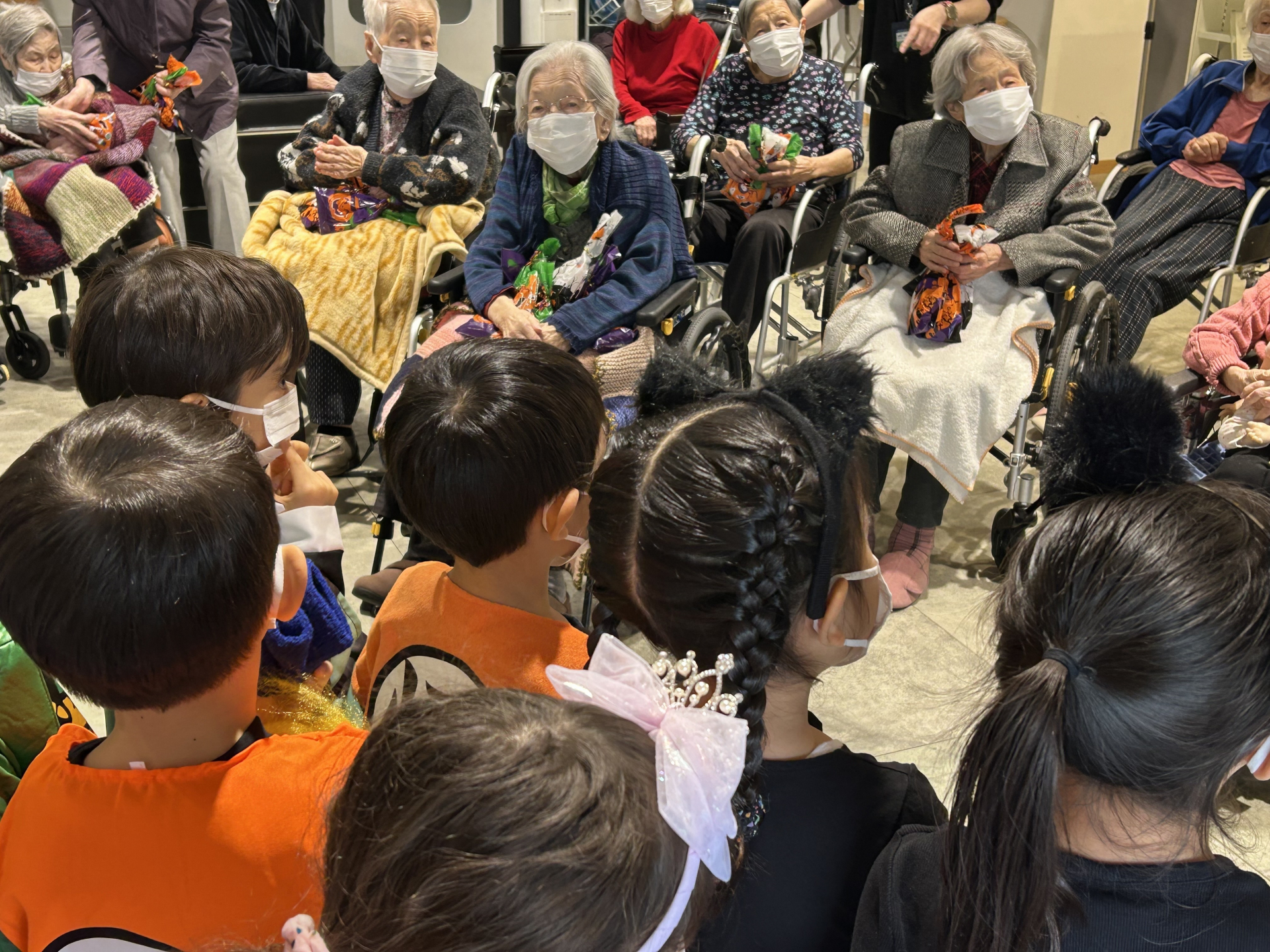 10月30日に近くのゆめはな保育園の園児たちが、ハロウィンで当施設を訪問してくれました。