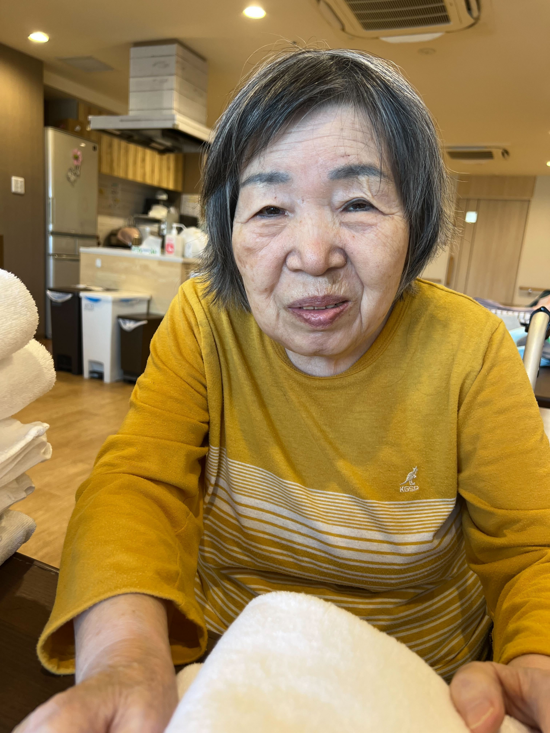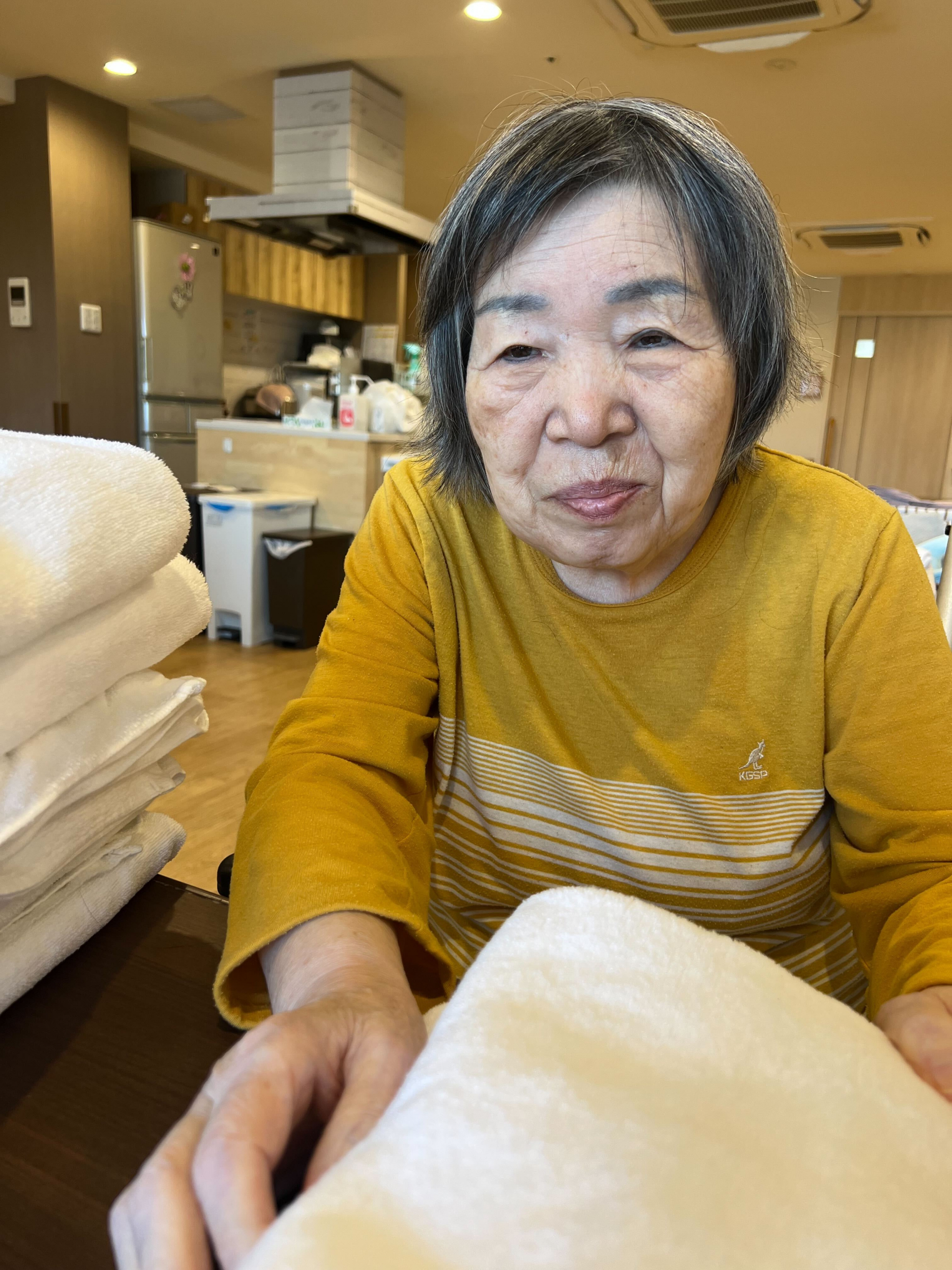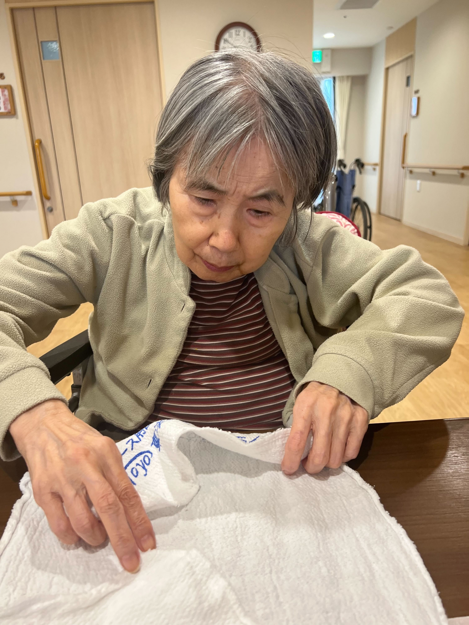 2025.12.05 特別養護老人ホーム 【日常生活】タオルたたみ* Tweet シェアする こんにちは♩ 先日、皆様にタオルを畳んでいただきました(^^) 手際良く畳んでくださりありがとうございます♡ またお願いしますね! 介護2課 いたくら 前の記事 2025.12.05 特別養護老人ホーム クリスマスツリーの飾り付け 次の記事 2025.12.04 特別養護老人ホーム ブーゲンビリア 一覧へ戻る
