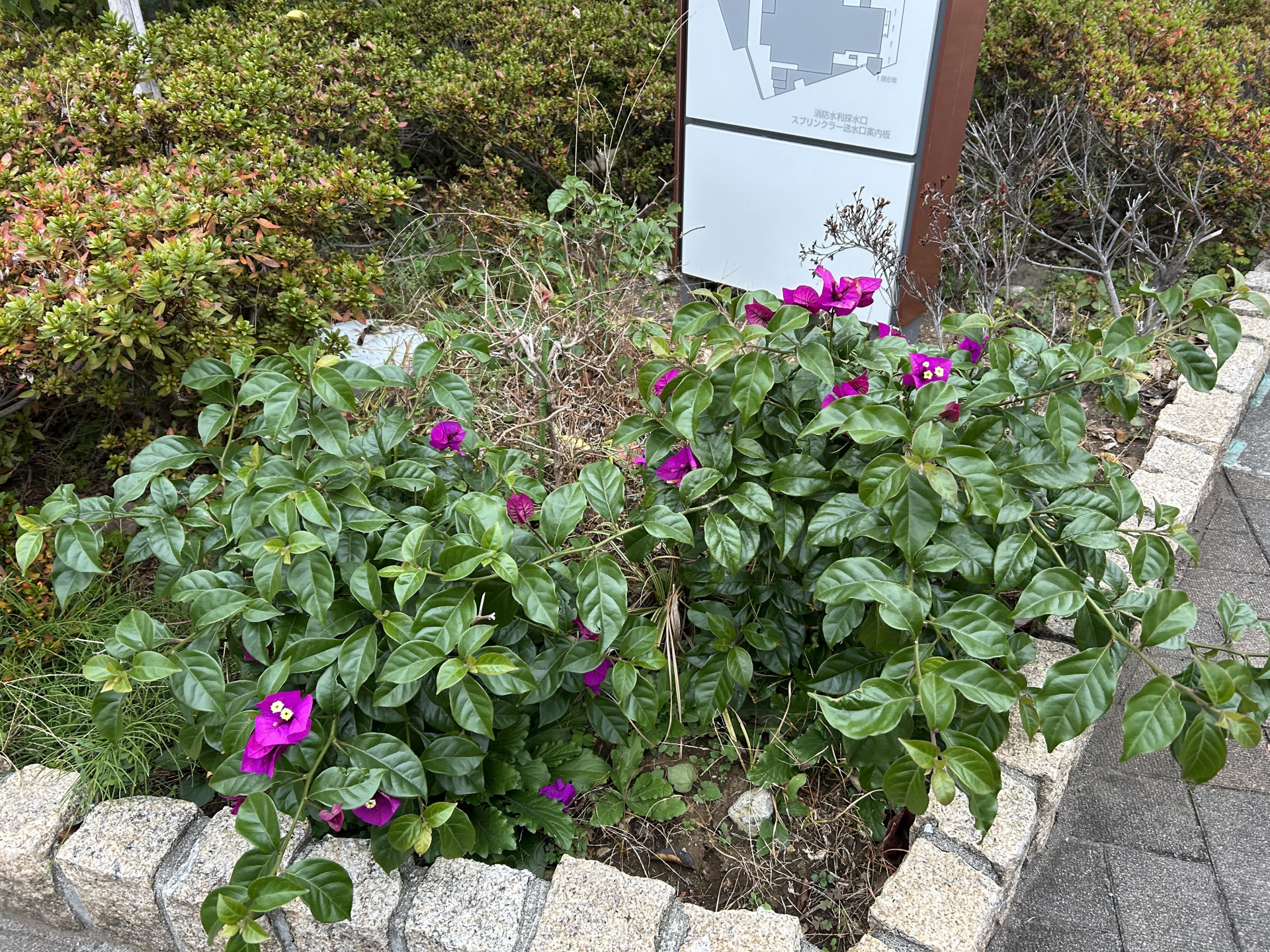 見に行ってみたら、2年前に地植えしたブーゲンビリアが咲いていました!!