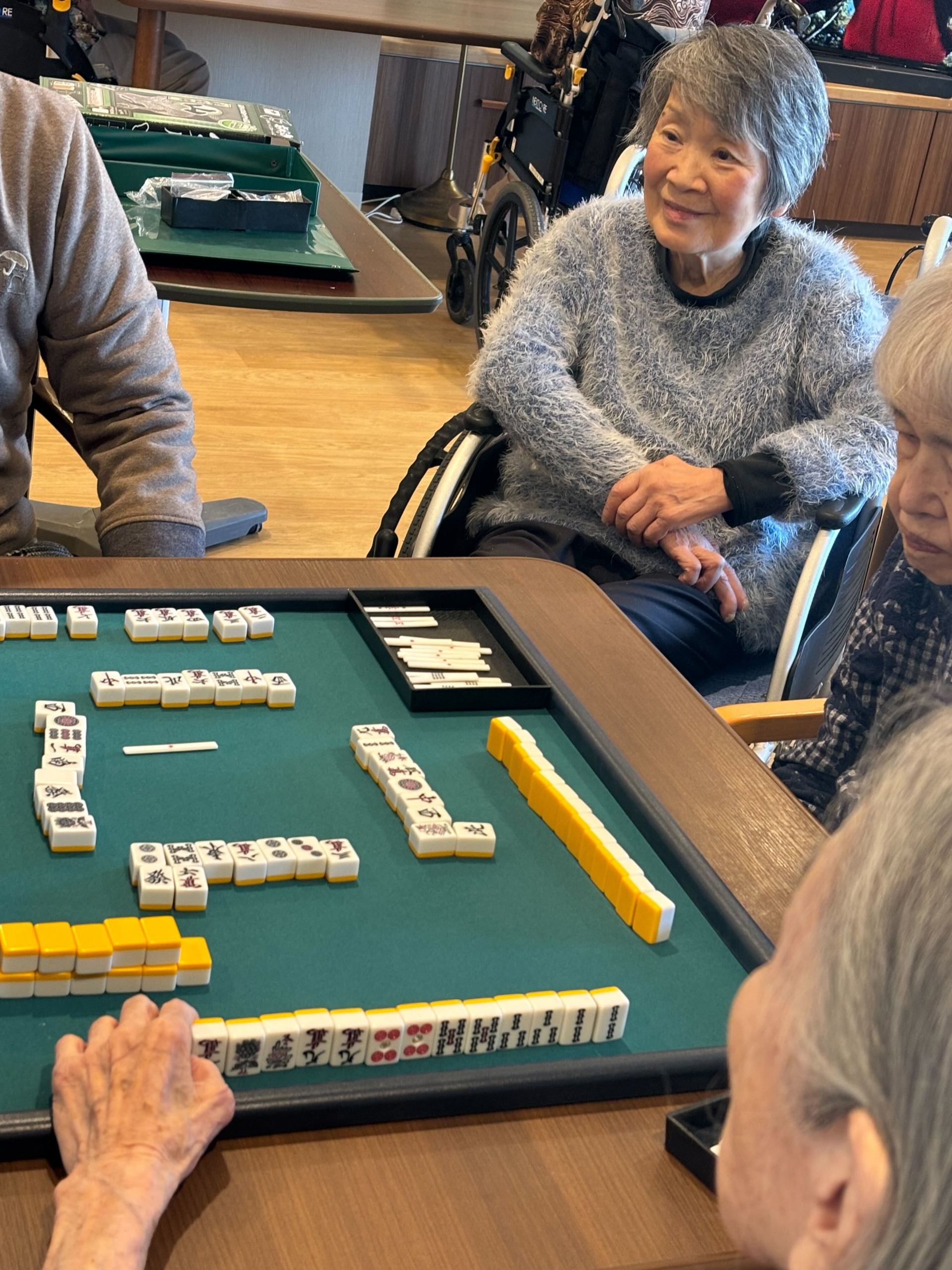麻雀に詳しいご入居者様とスタッフが丁寧に進行してくれていたので