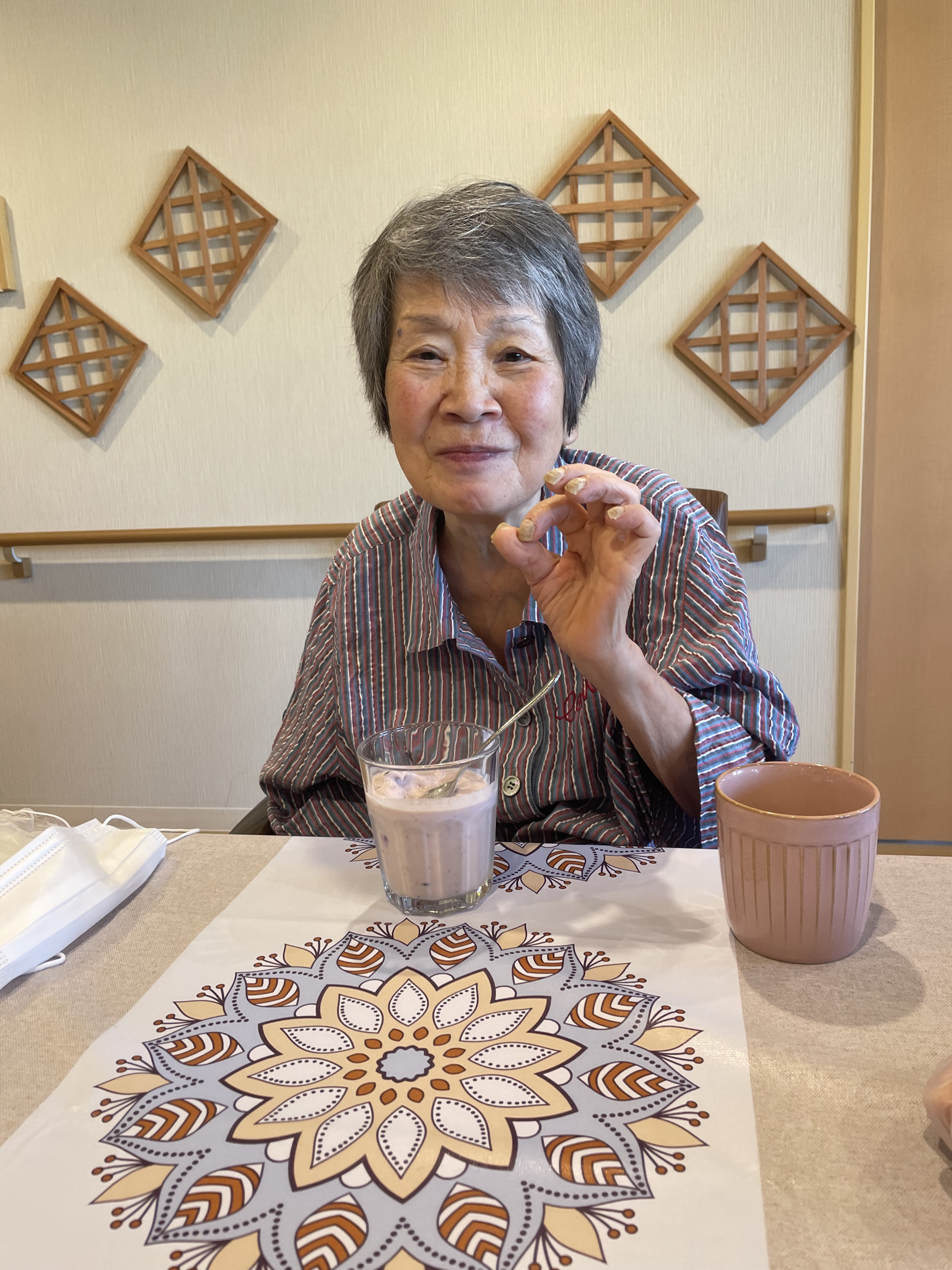 ショートステイでは、先日ブルーベリーシェイク作りレクリエーションを行いました!