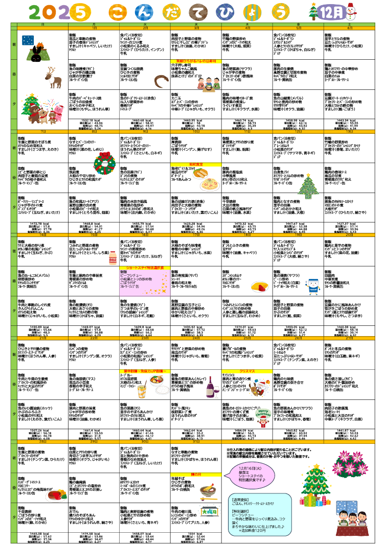 ☆2025年12月16日SS特別選択食のお知らせ
