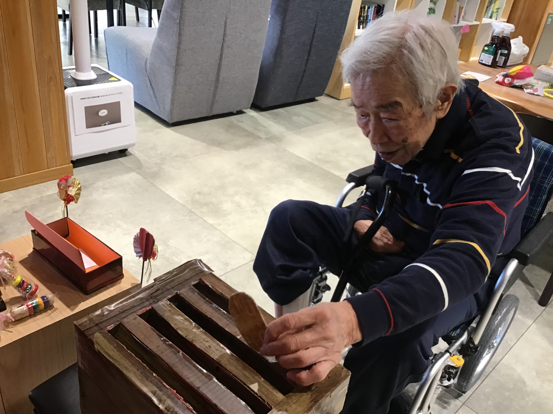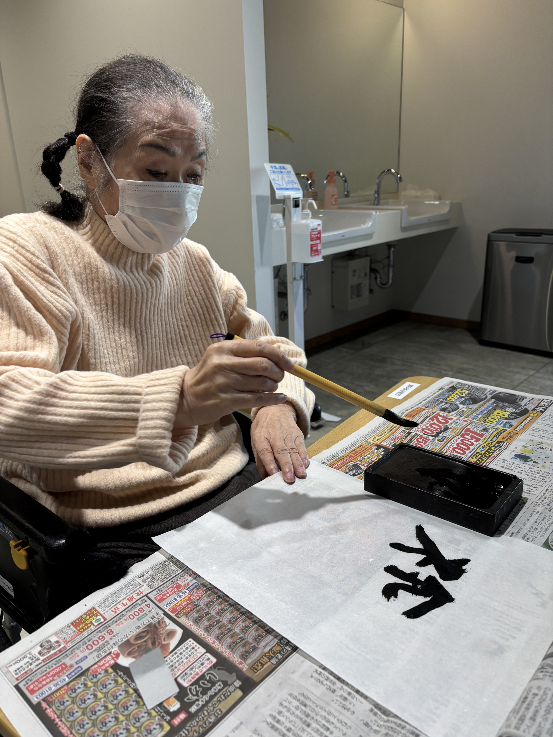 さて、ショートステイですが新年は皆様で1Fにあるお正月スペースで書初めや昔遊びを楽しまれました(*´▽`*)