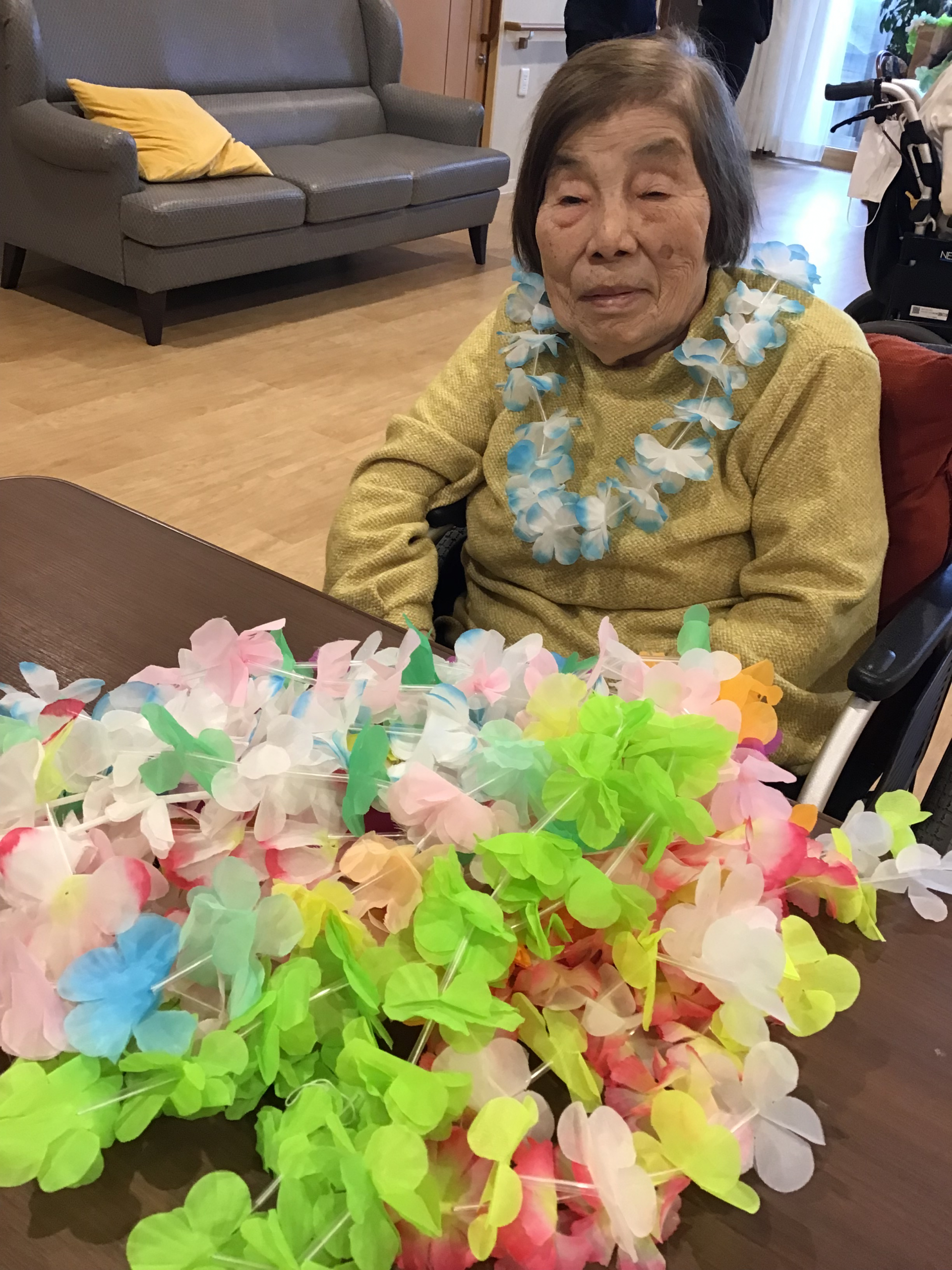 ユニットで花飾りを用意して、気分はアロハ~♪でした(*^▽^*)