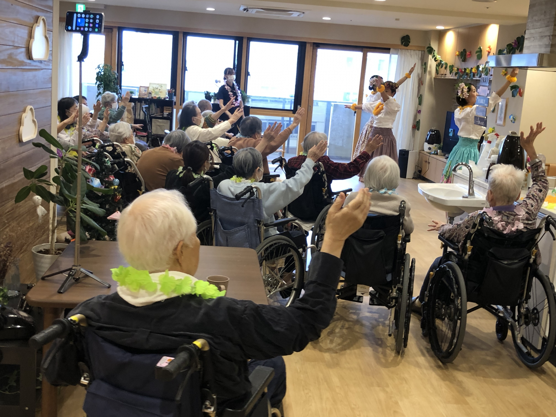 冬ですが、先月、身体もあったまるフラダンスレクリエーションを行いました!