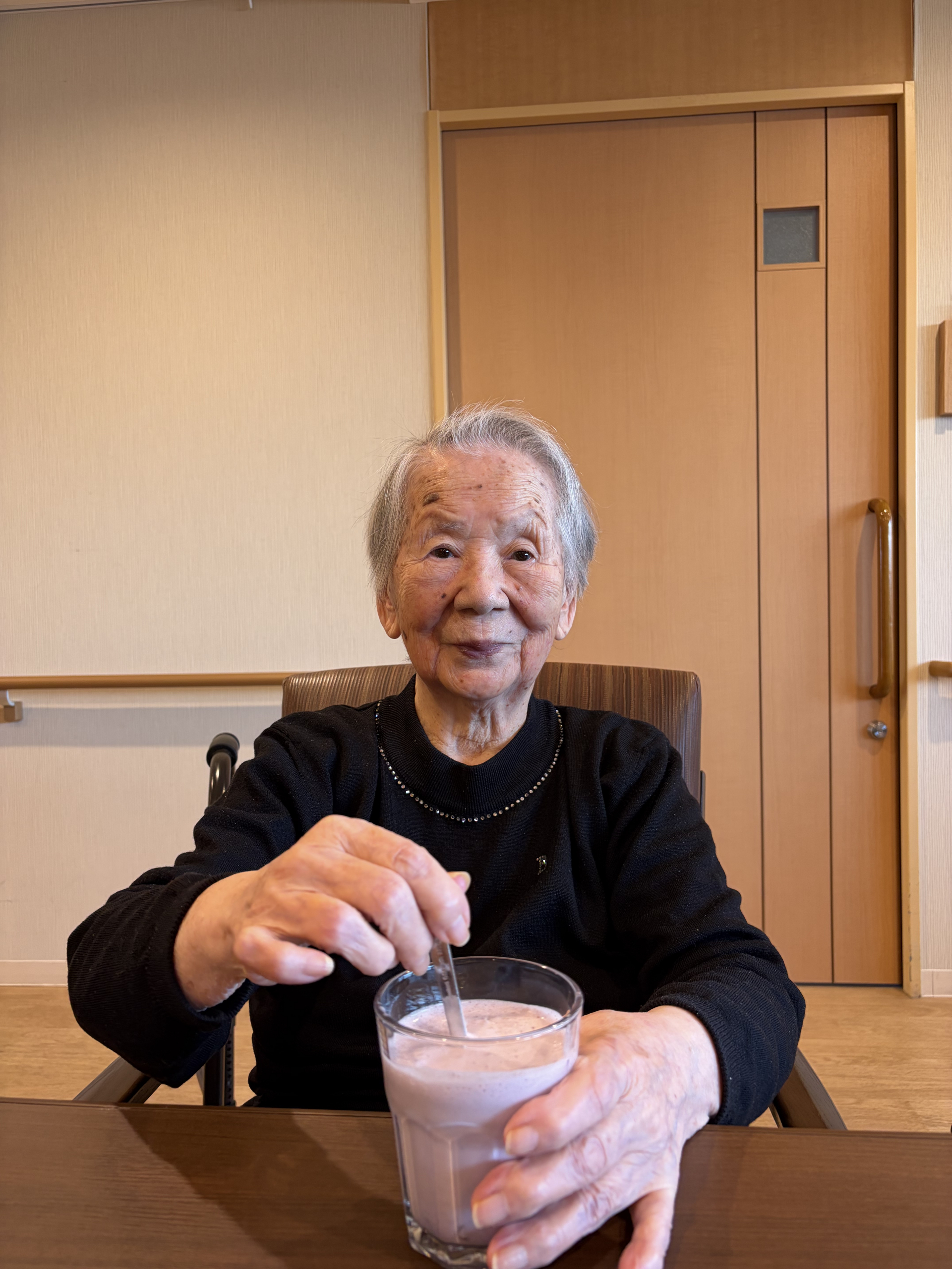 2月のバレンタインレクリエーションとして、チョコレートスムージーを作りました♪