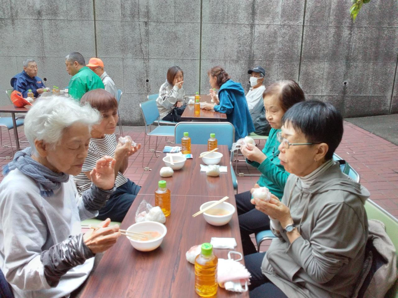町会、職員、近隣地域の方々と豚汁を作りました。