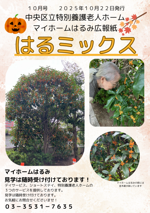 2025.10.28 NEW ハロウィン喫茶を開催しました 特別養護老人ホーム 2025.10.25 冬服紹介 活動報告 2025.10.24 寒さを感じる季節 活動報告 2025.10.22 はるミックス10月号ができました 活動報告 2025.10.21 合格するぞ!オー!! 活動報告(IN) 2025.10.21 キンモクセイ 活動報告 2025.10.20 和菓子の会 活動報告 2025.10.18 近くの公園へ外出‼ 活動報告 2025.10.16 お玉を買いました 活動報告 2025.10.15 外へ行きたいね 活動報告 2025.10.15 ケアはぴラウンド 活動報告 2025.10.10 はるみ探検隊 活動報告 2025.10.10 毎週金曜昼の楽しみ~ 活動報告 2025.10.10 ボランティアツアーのご案内 ニュース 2025.10.08 雨の前の散歩 活動報告 1 2 3 … 22