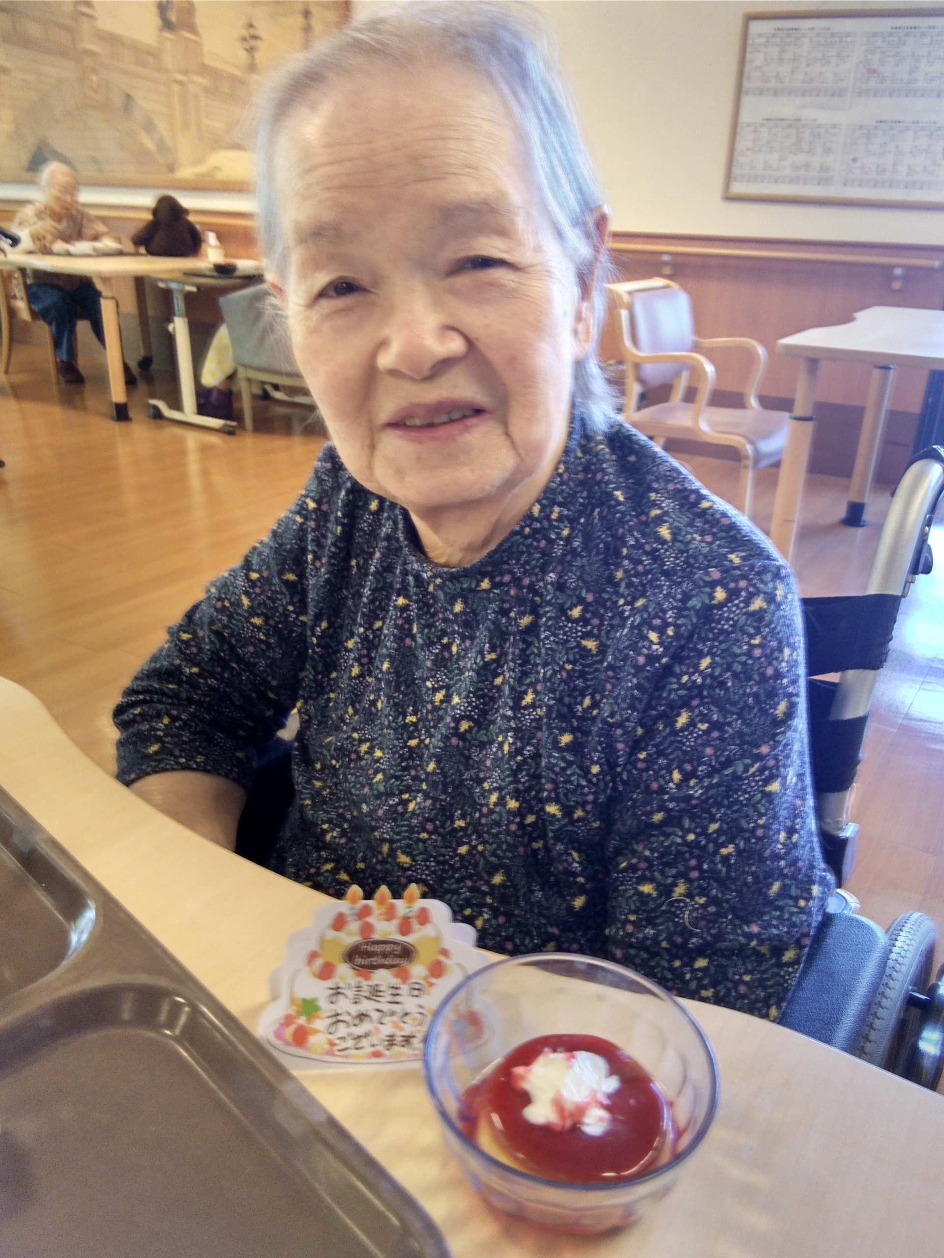 マイホームはるみではお誕生日の日には昼食時にその方にあったスイーツとカードがつきます(*^。^*)