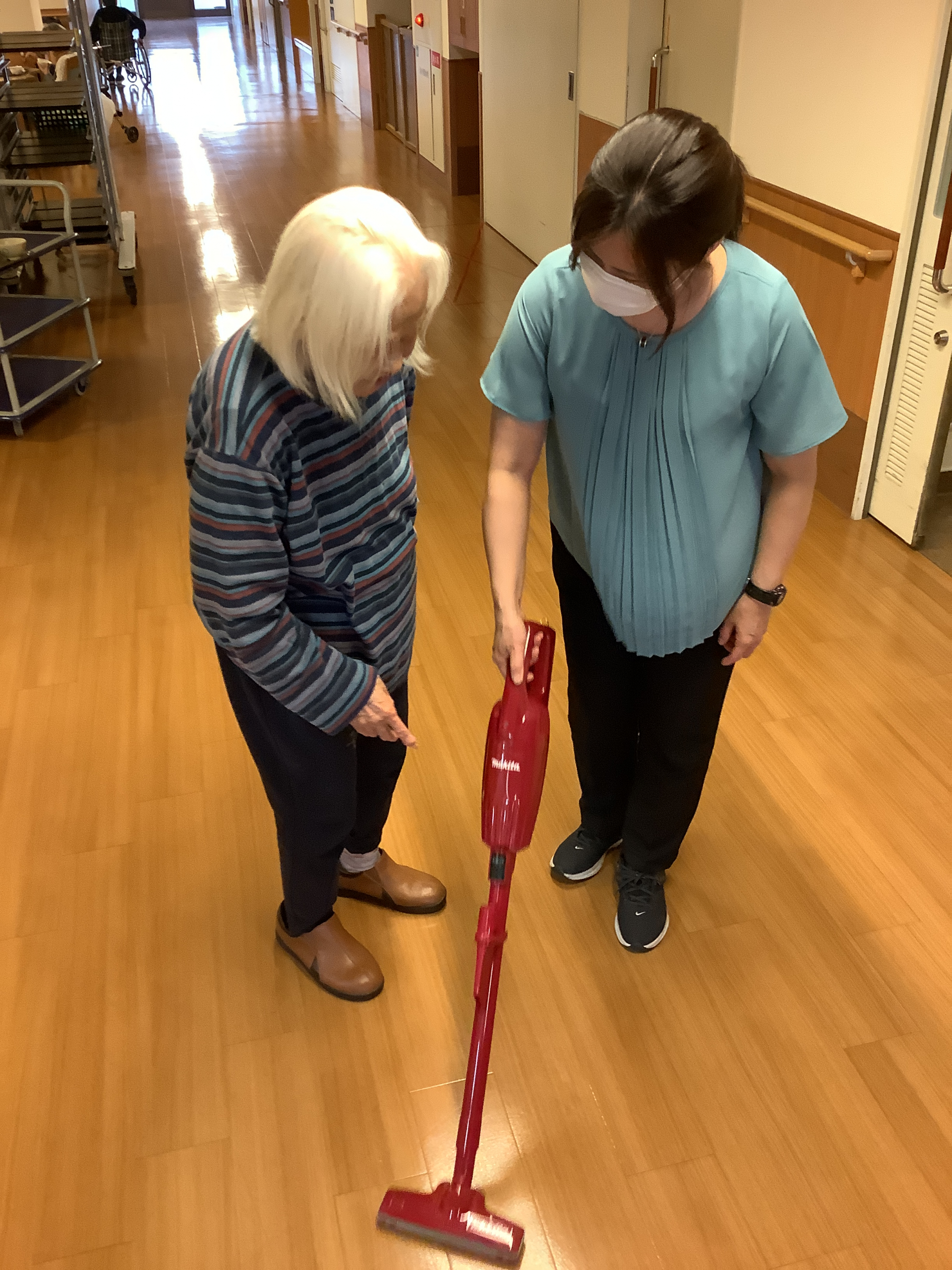 施設長がその掃除機を持って掃除をしていたので後をついて行ってみました♩