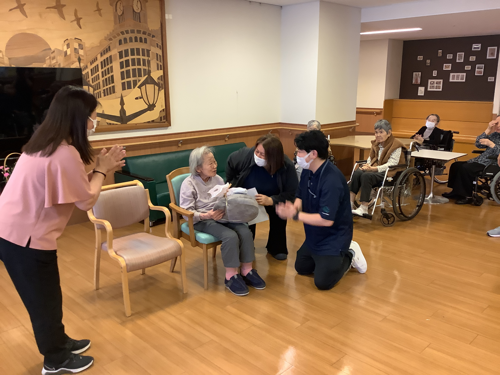 ご利用者の皆さま全員で集まり、にぎやかで温かい時間を過ごしました。