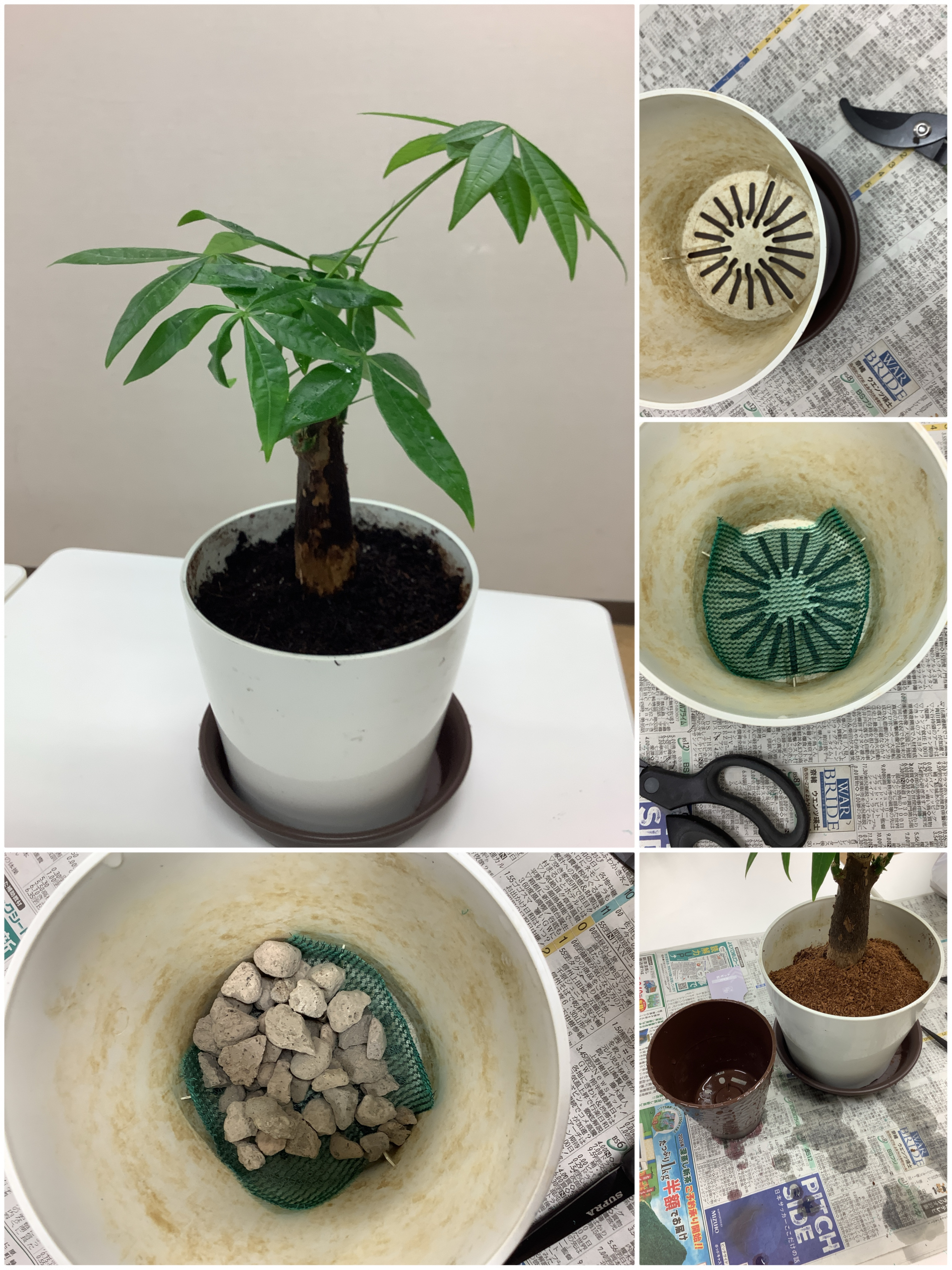 以前購入したパキラをいただいた大きなプランターに植え替えました!