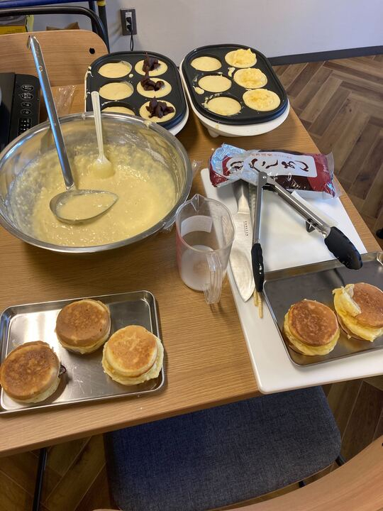 たこ焼きと大判焼きを手作りし、できたてを頂きました。今日初めて会った職員同士もたこ焼きをひっくり返しながら会話が弾みます。