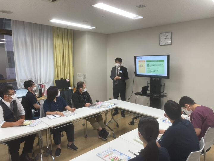主な講師は施設内の専門職が担うのですが今回はあの有名なイオンドリンクでお馴染みの大塚製薬さんが研修に来てくださいました。