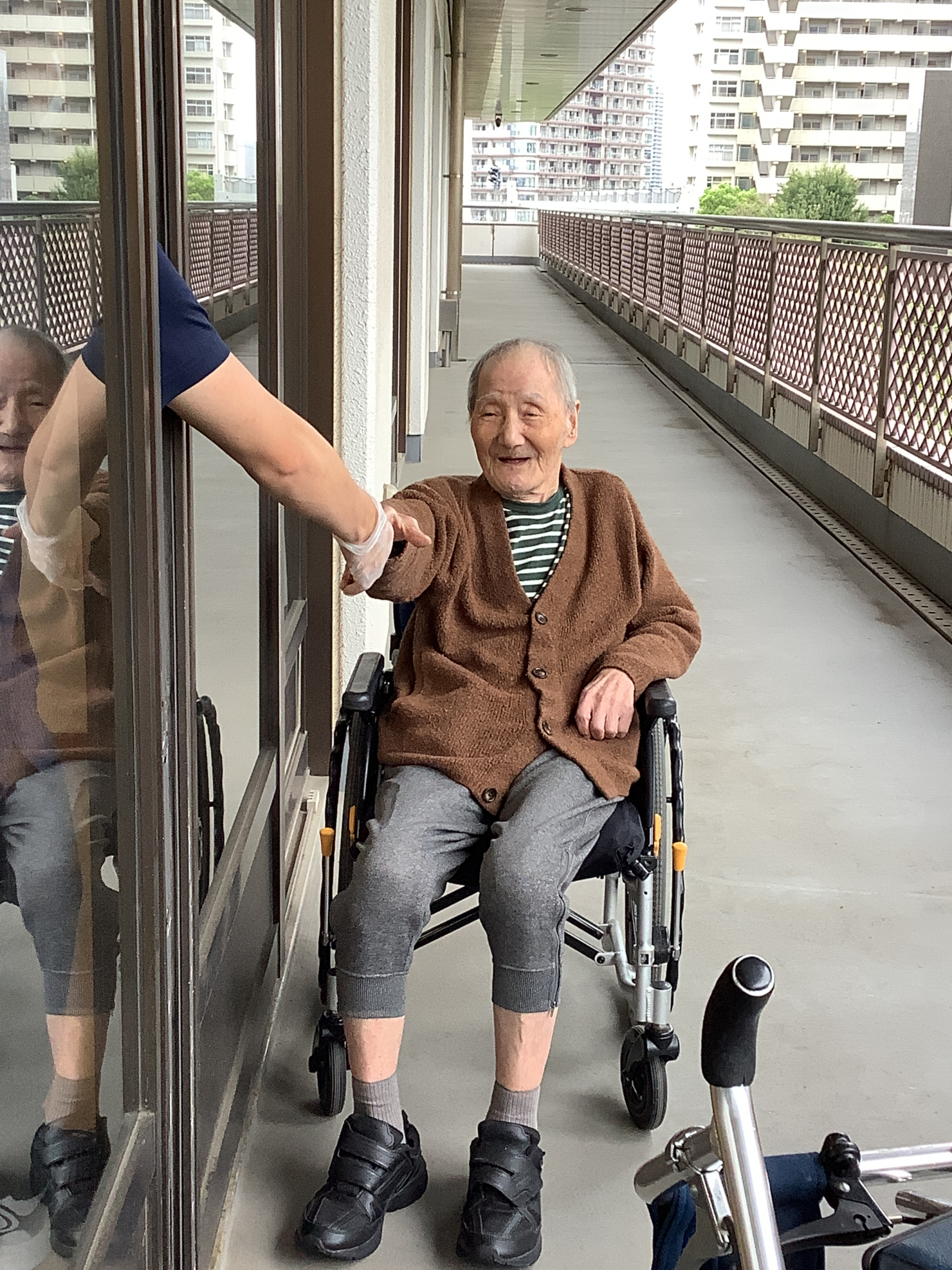 職員が時間に余裕ができた時は、ご利用者の皆様とベランダにでて散歩しています。