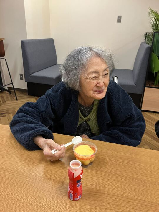 この後、雨が降り始めたので施設に戻り、お部屋でおやつを食べました🍩