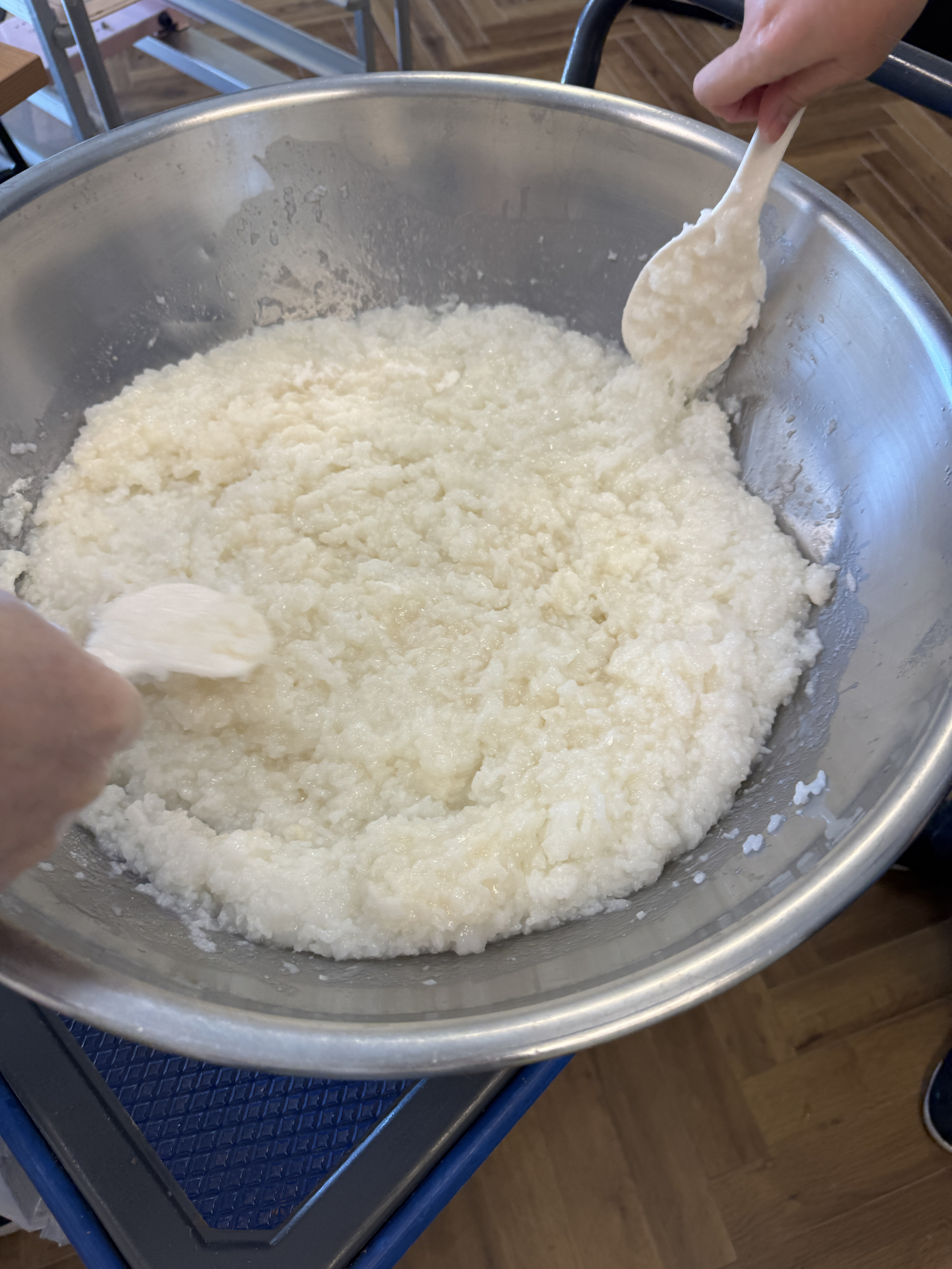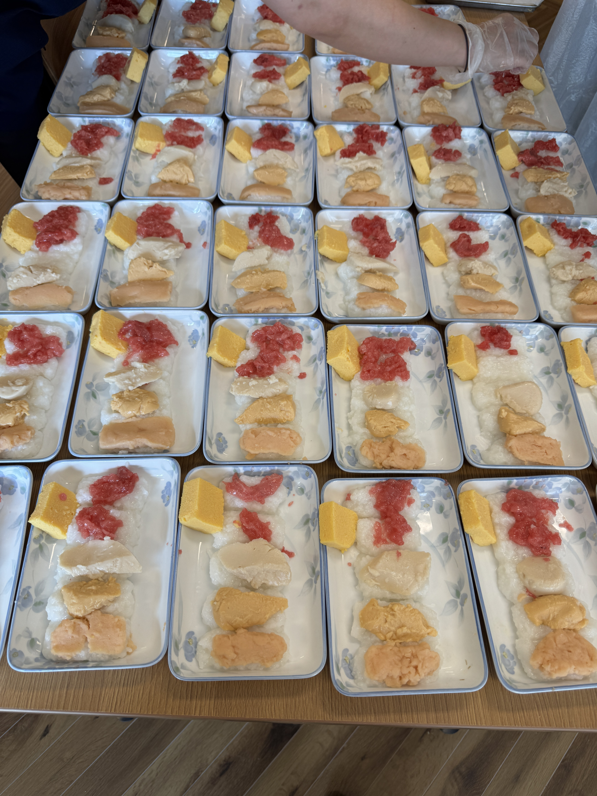 330貫お寿司の型で抜きました・・米は酵素入りのゲル化剤で混ぜて固めました・・