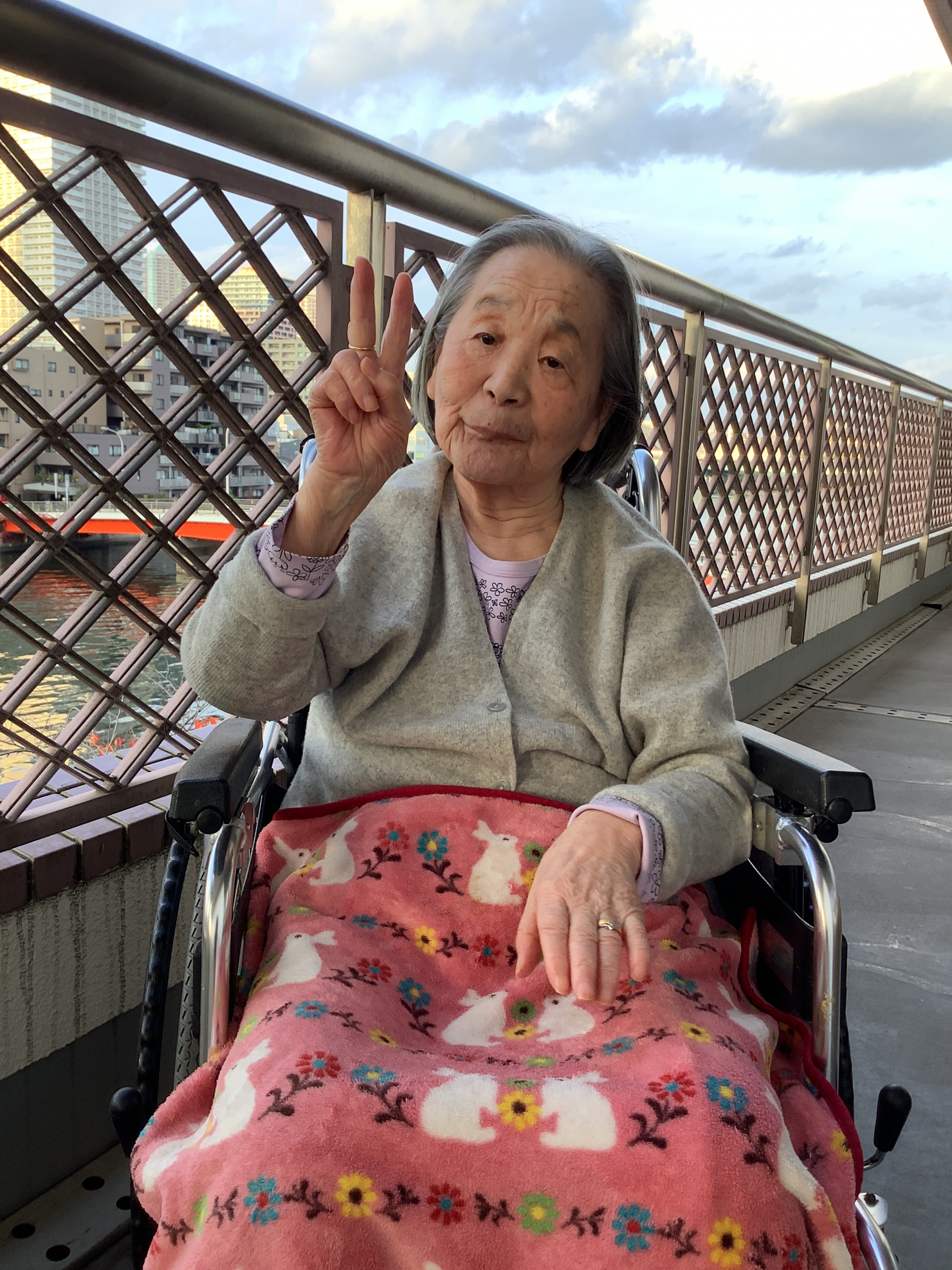 今日は、冬の日差しがやさしく差し込む中、利用者さんと外気浴を行いました。