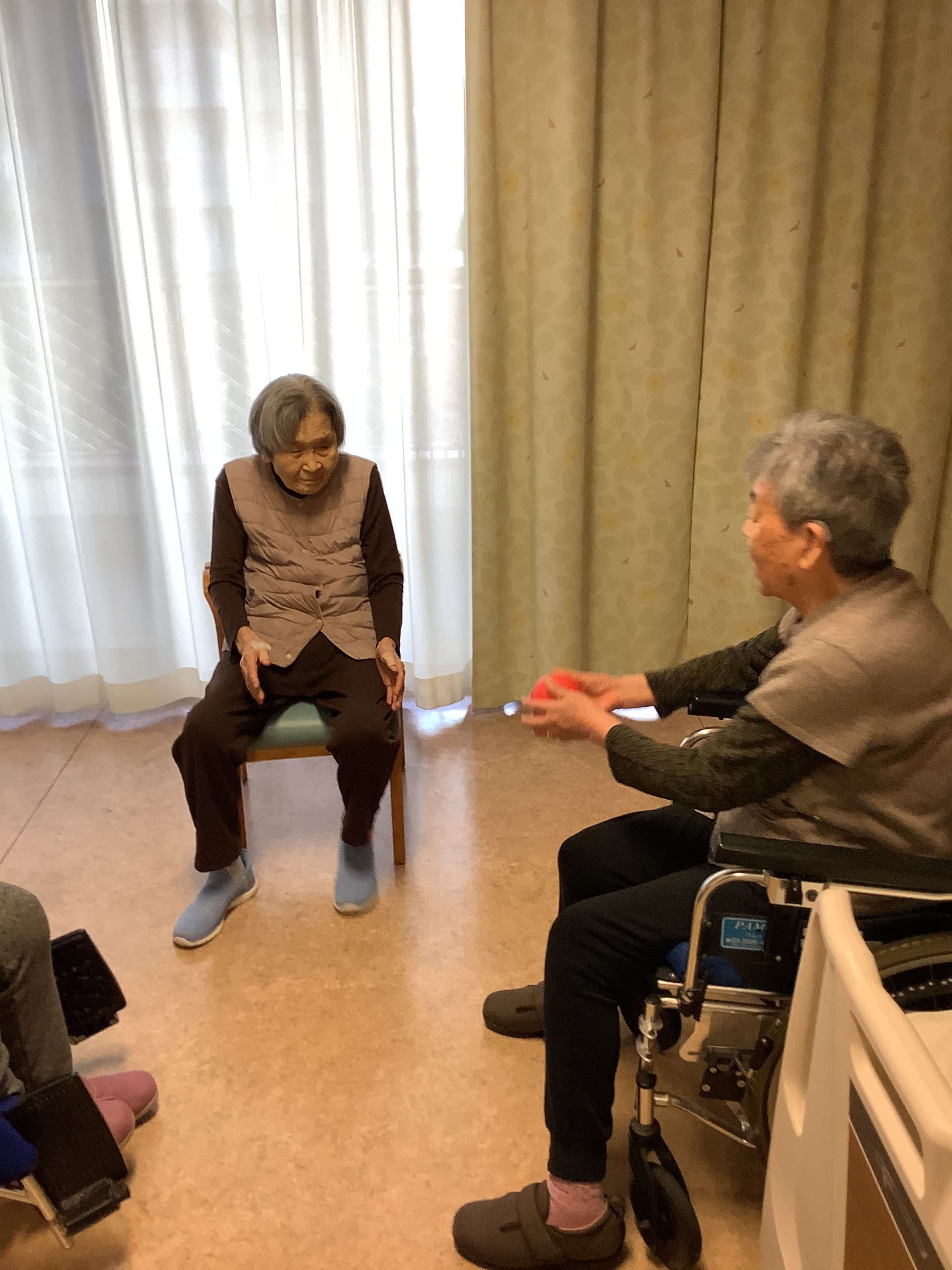 4階です!!本日は、居室内で同室者の方たちとキャッチボールを行いました!