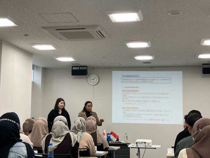 今年8月に入職したベトナムEPA生、来年4月入職予定の日本人職員、そして今回のインドネシアEPA生が集まり、香取理事長のお話などをお聞きしました。