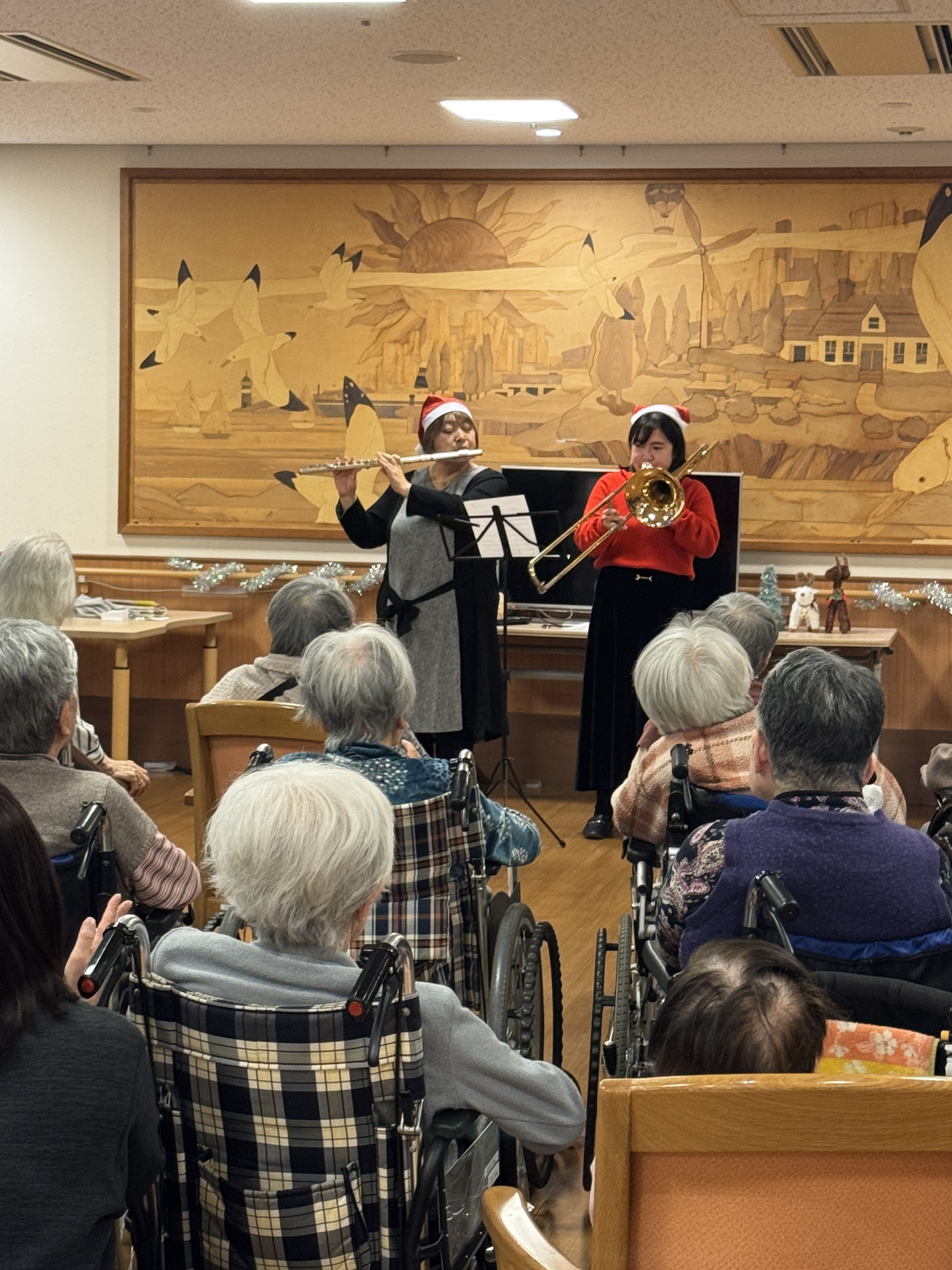 マイホームはるみでは先日、クリスマスコンサートを行いました。