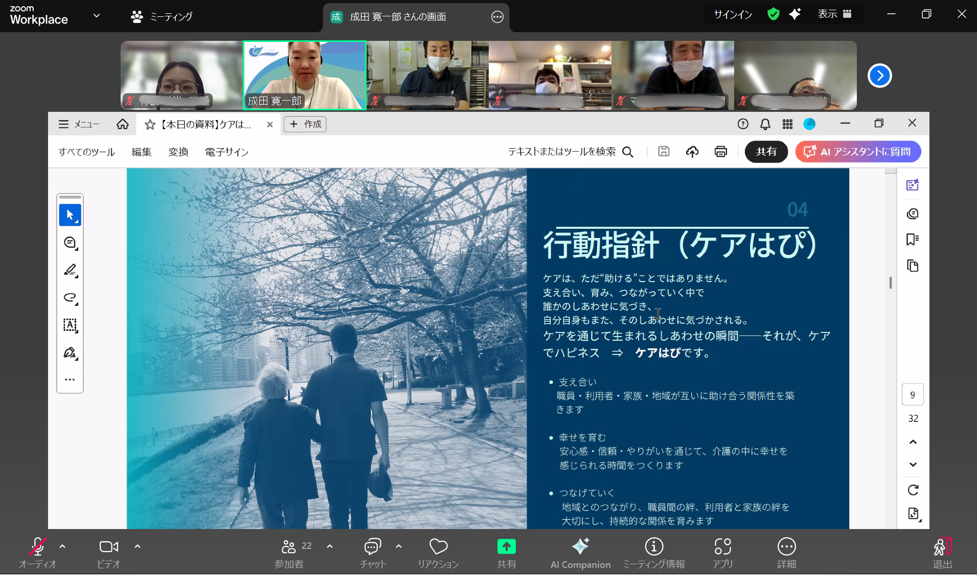 7月23日(水)特養事業本部 本部長・成田によるケアはぴ専門学校のオンライン授業を実施しました。