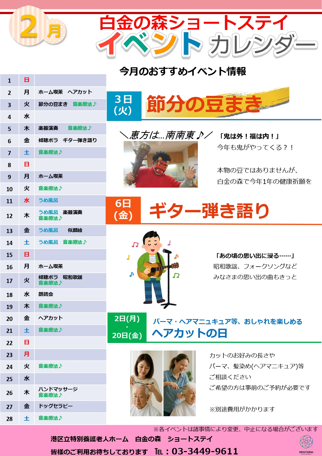 特養ショートステイ 2月イベントカレンダー(港区、目黒区)