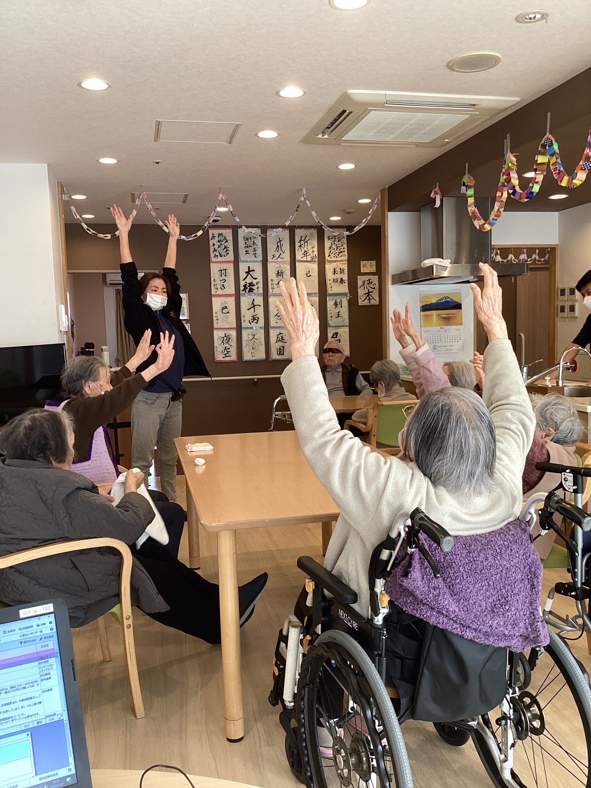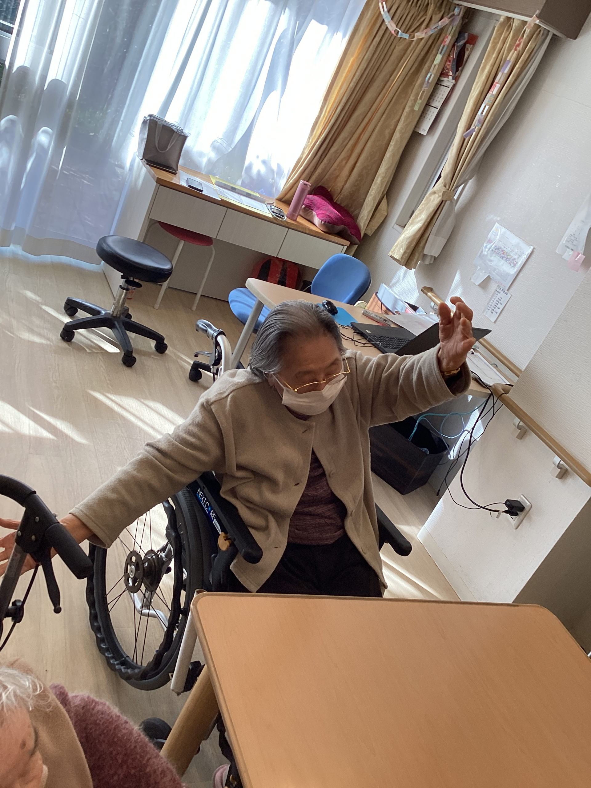 体操をしながら「元気になったらダンスをやりたいわ~」と仰るM様。いい目標ですね(^^♪