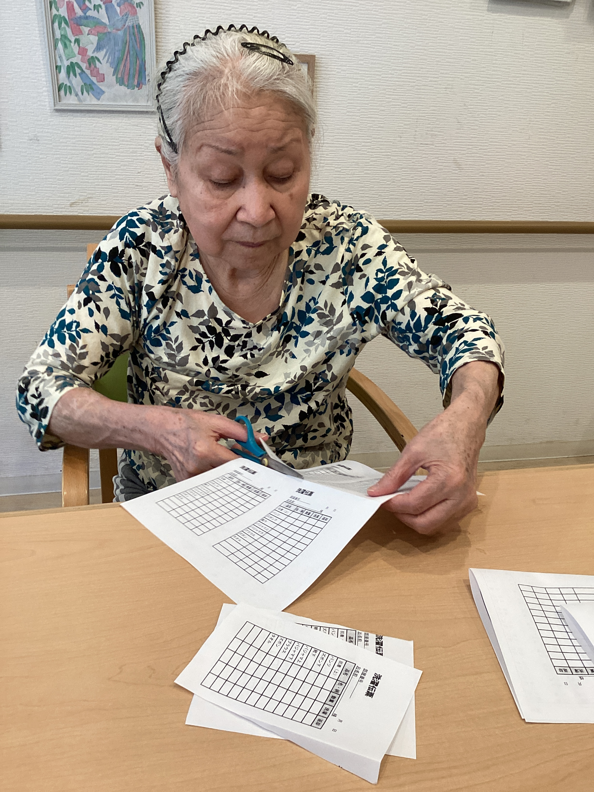 2025.05.07 活動報告 お手伝い〜 Tweet シェアする 皆さん、こんにちは! 今日はM様に洗濯伝票の切り取りのお手伝いをして頂きました。 「ここ真っ直ぐ切ればいいの?」と仰り、綺麗に切ってもらいました😊 M様、ありがとうございます!♡♡ 介護課 エラ 前の記事 2025.05.07 活動報告 お散歩♩ 次の記事 2025.05.05 活動報告 ババ抜きを実施! 一覧へ戻る