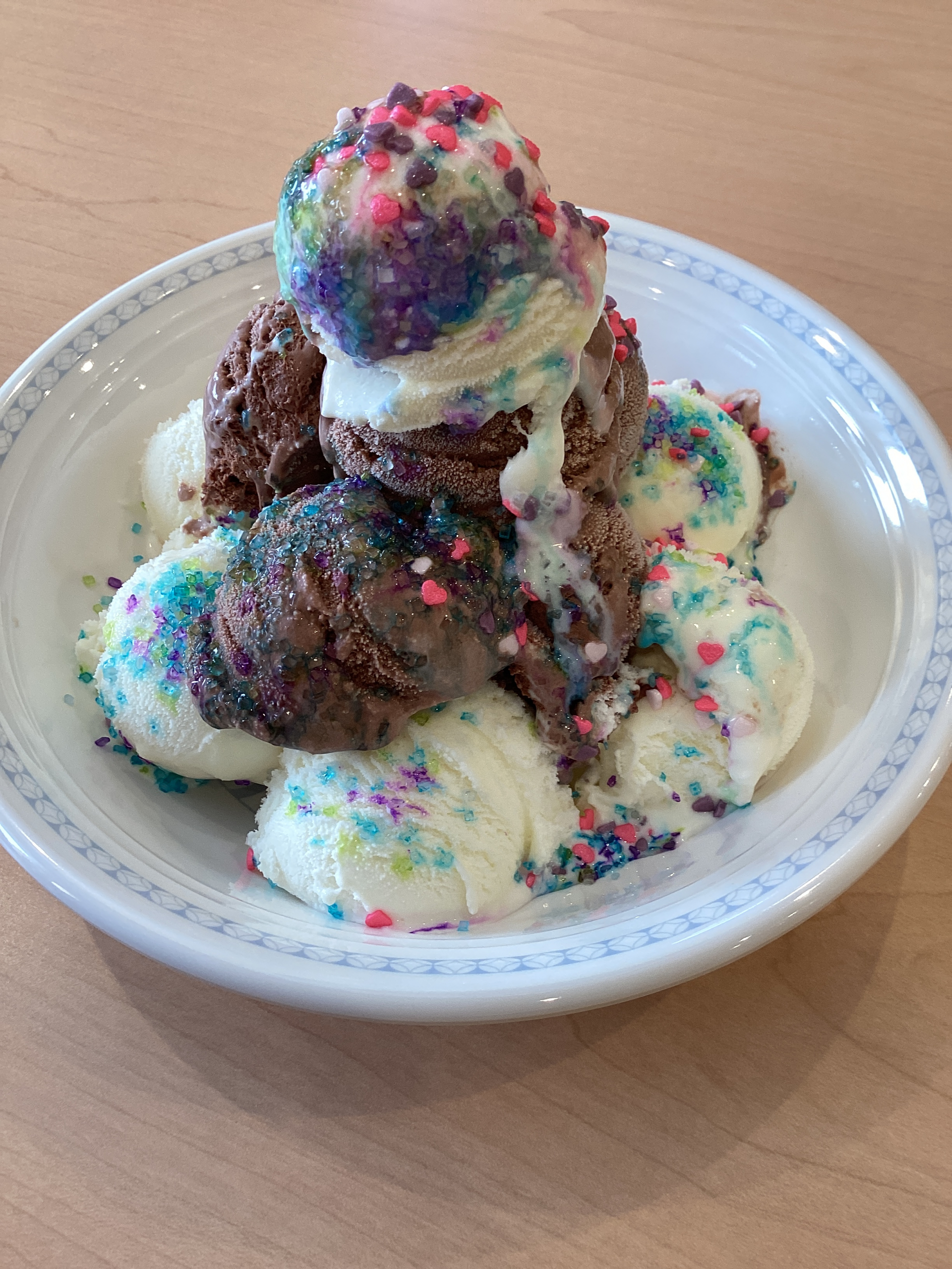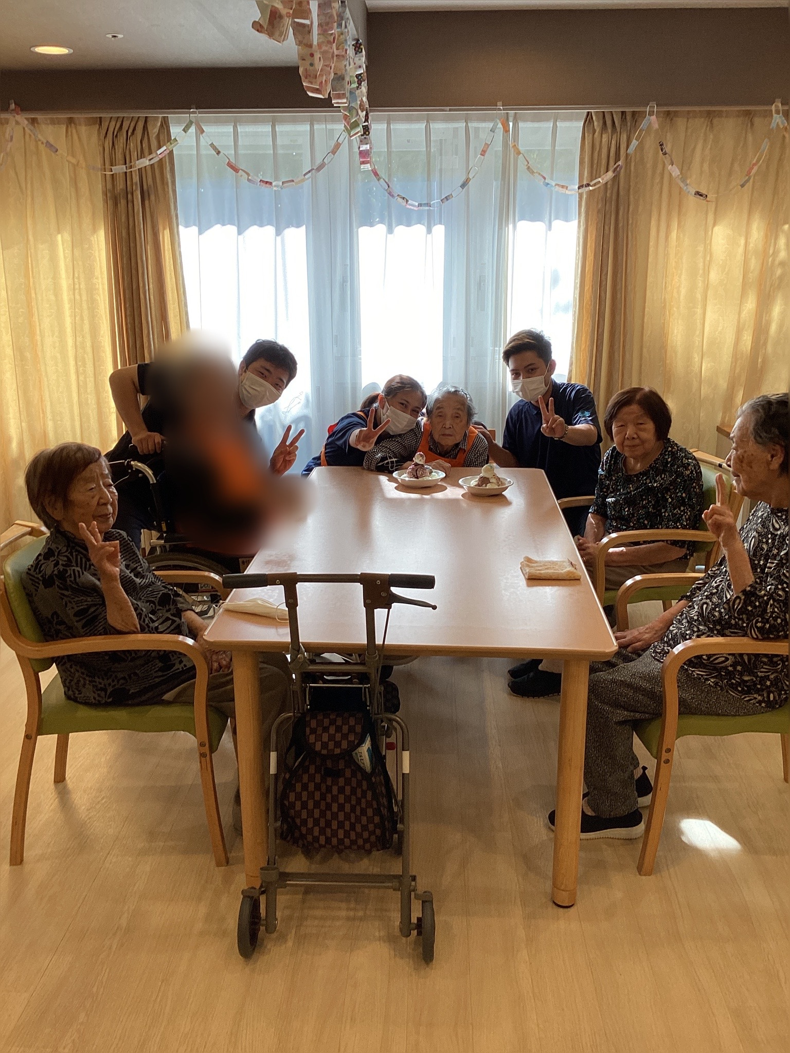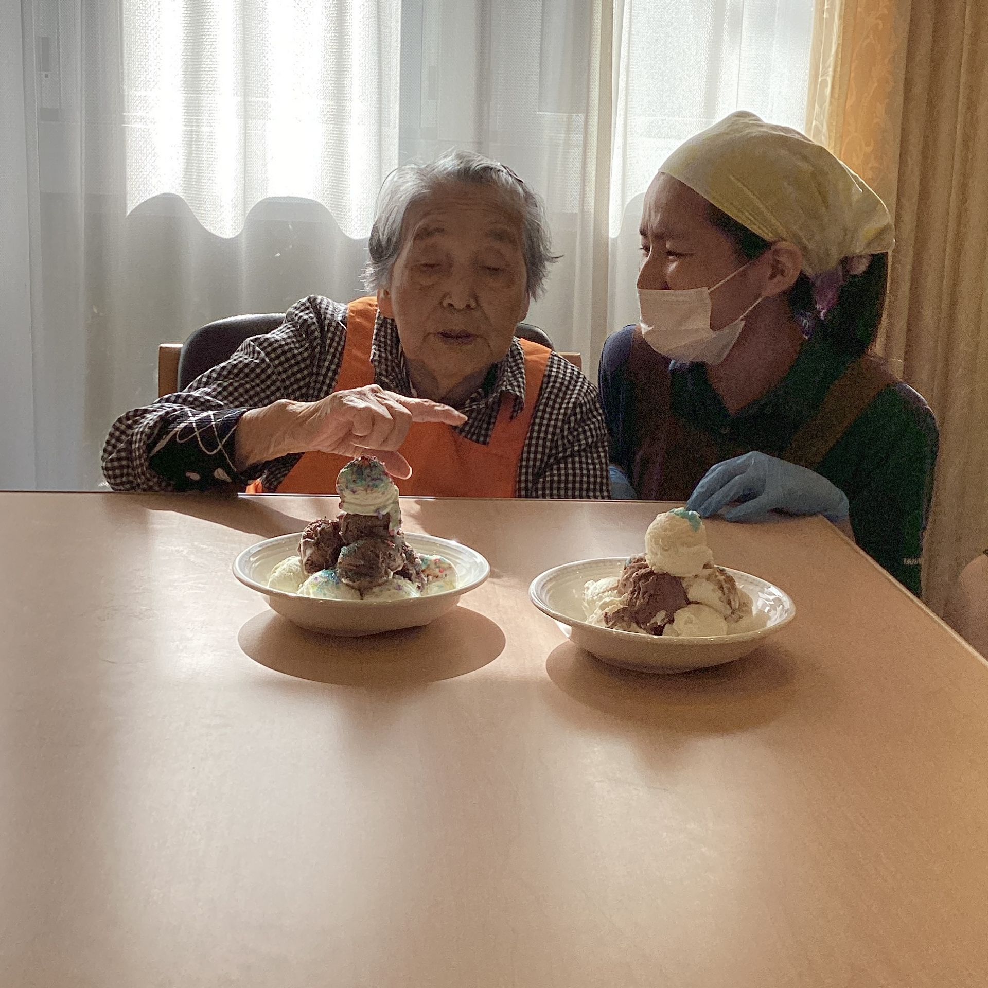 アイスを重ねてケーキみたいな形にして、皆でデコレーションして、