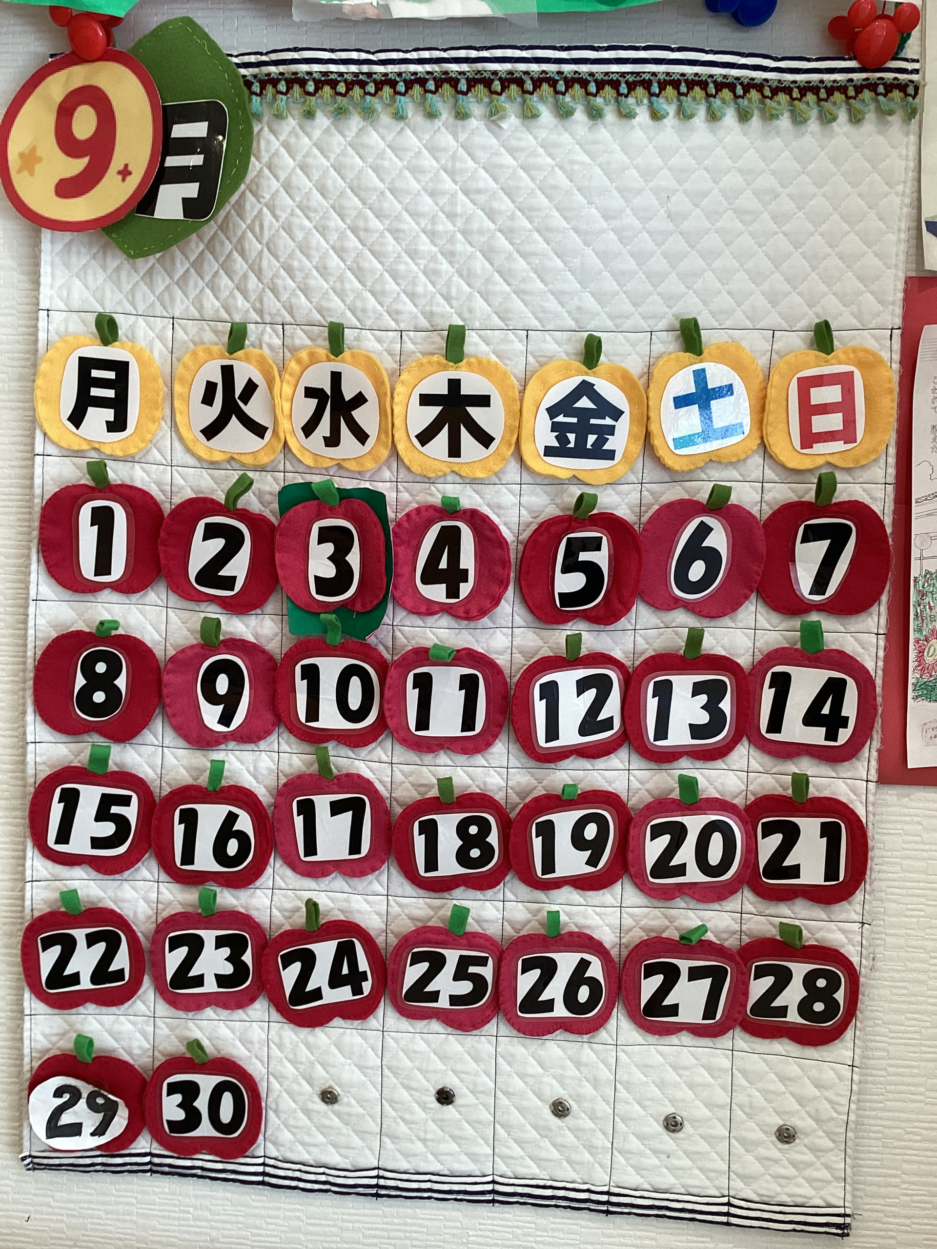 皆さんと一緒にフロアのカレンダーを9月のものに差し替えました🗓️
