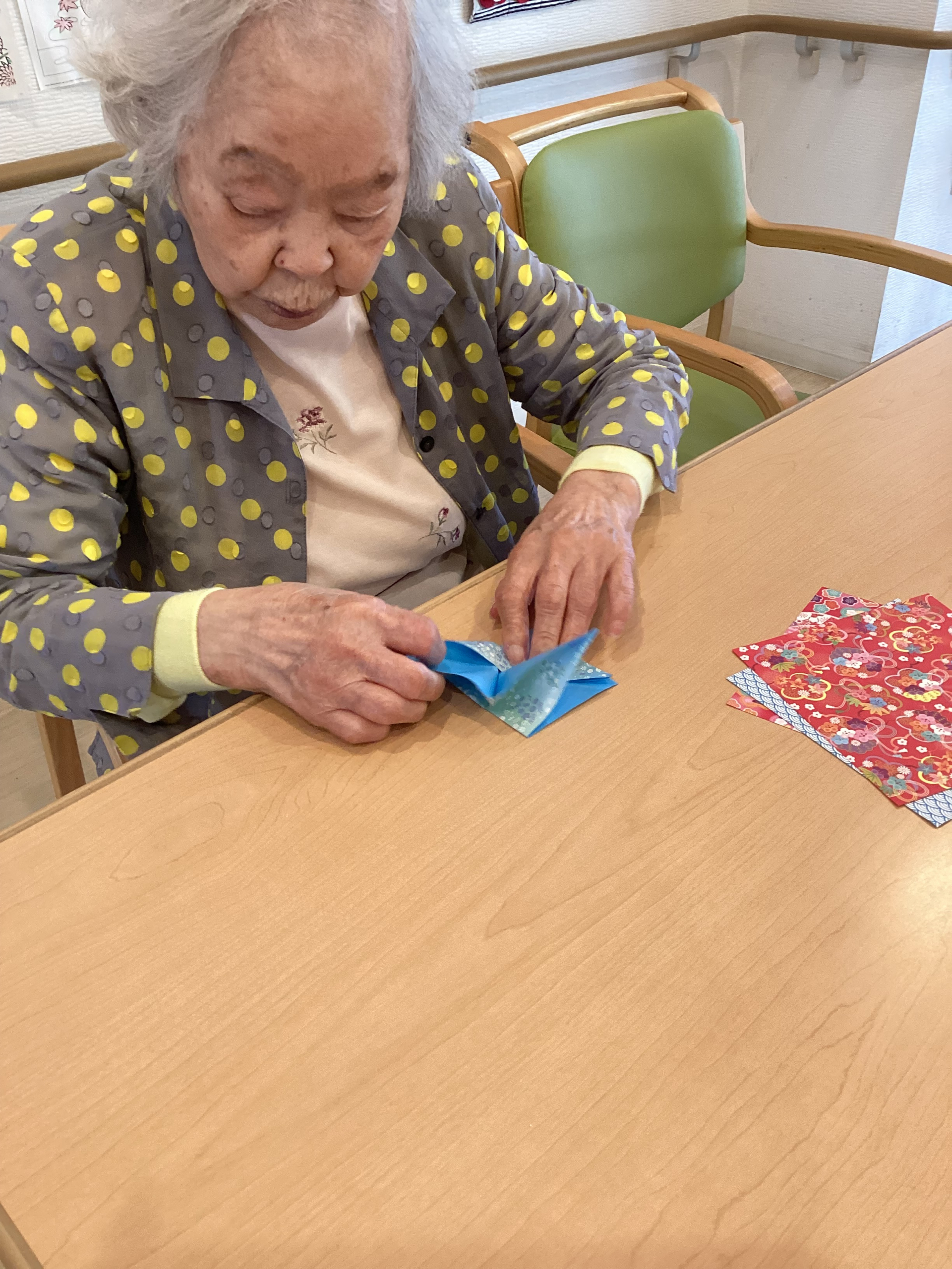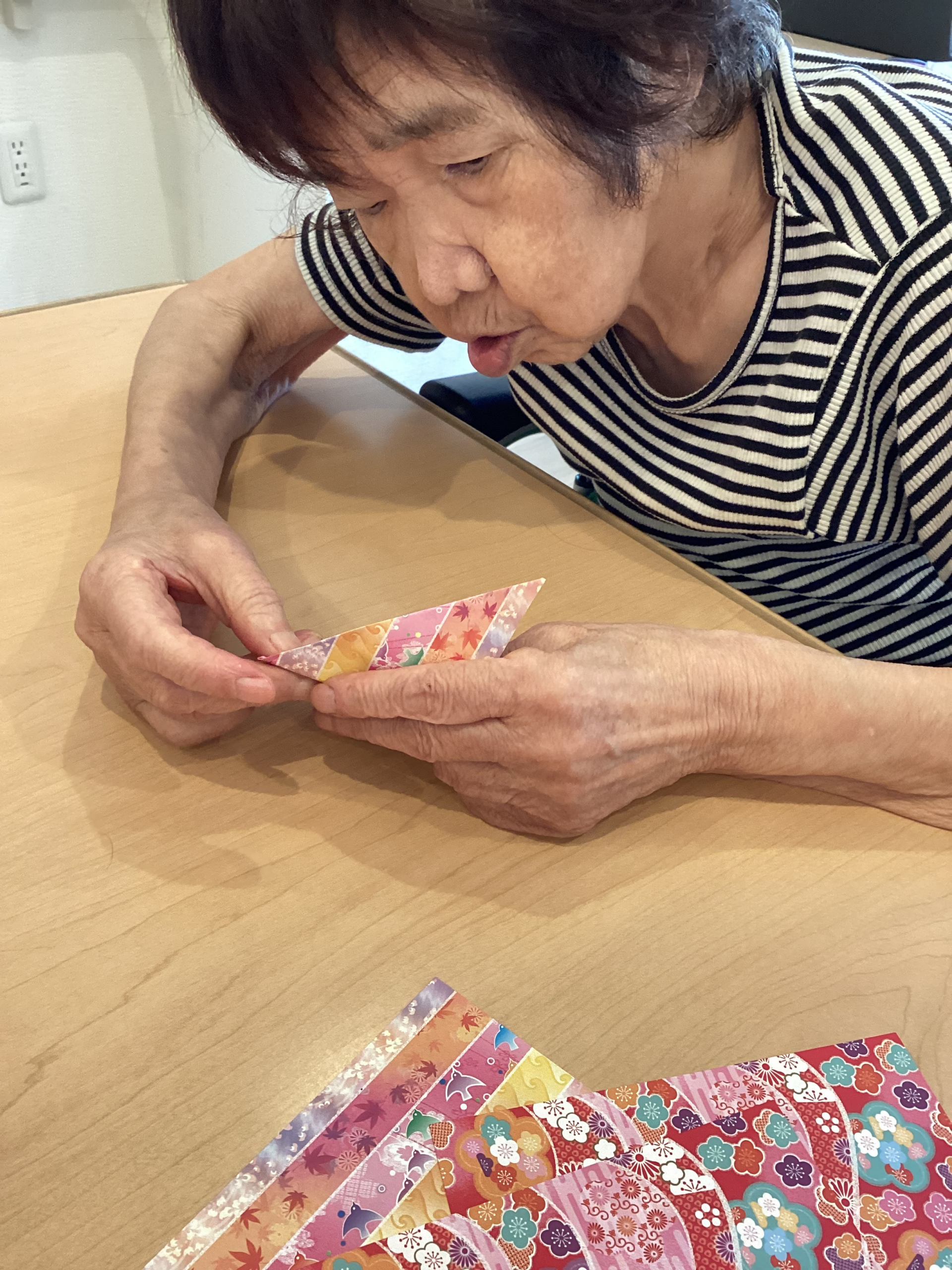 2025.09.02 活動報告 折り紙を楽しみました〜🎶 Tweet シェアする 今日は利用者様と一緒に折り紙を楽しみました🎶 やっこさんや鶴など、いろいろな作品が完成して、みんな笑顔〜😊 手を使って、心もリフレッシュ〜♡ ゆっくりショートステイ新宿西落合介護課:エラ 前の記事 2025.09.02 活動報告 今日もたくさん歩きました〜🎶 次の記事 2025.09.01 活動報告 歩行訓練のご様子〜🎶 一覧へ戻る