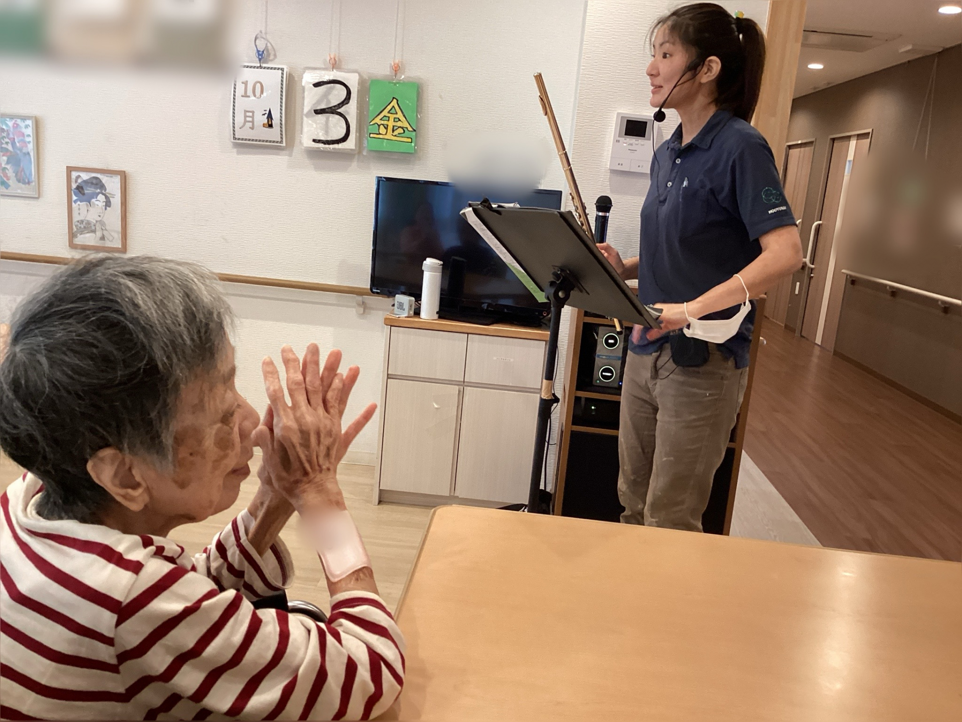 2025.10.03 活動報告 フルート演奏の日〜♪ Tweet シェアする 本日はフルート演奏の日! 秋の歌を一緒に歌いながら、皆さんと心温まるひとときを過ごしました〜(*^^*) 音楽の力で笑顔が広がる、素敵な時間となりました。 ゆっくりショートステイ新宿西落合介護課:エラ 前の記事 2025.10.10 活動報告 蕎麦打ち体験がありました! 次の記事 2025.10.02 活動報告 お散歩〜♪ 一覧へ戻る