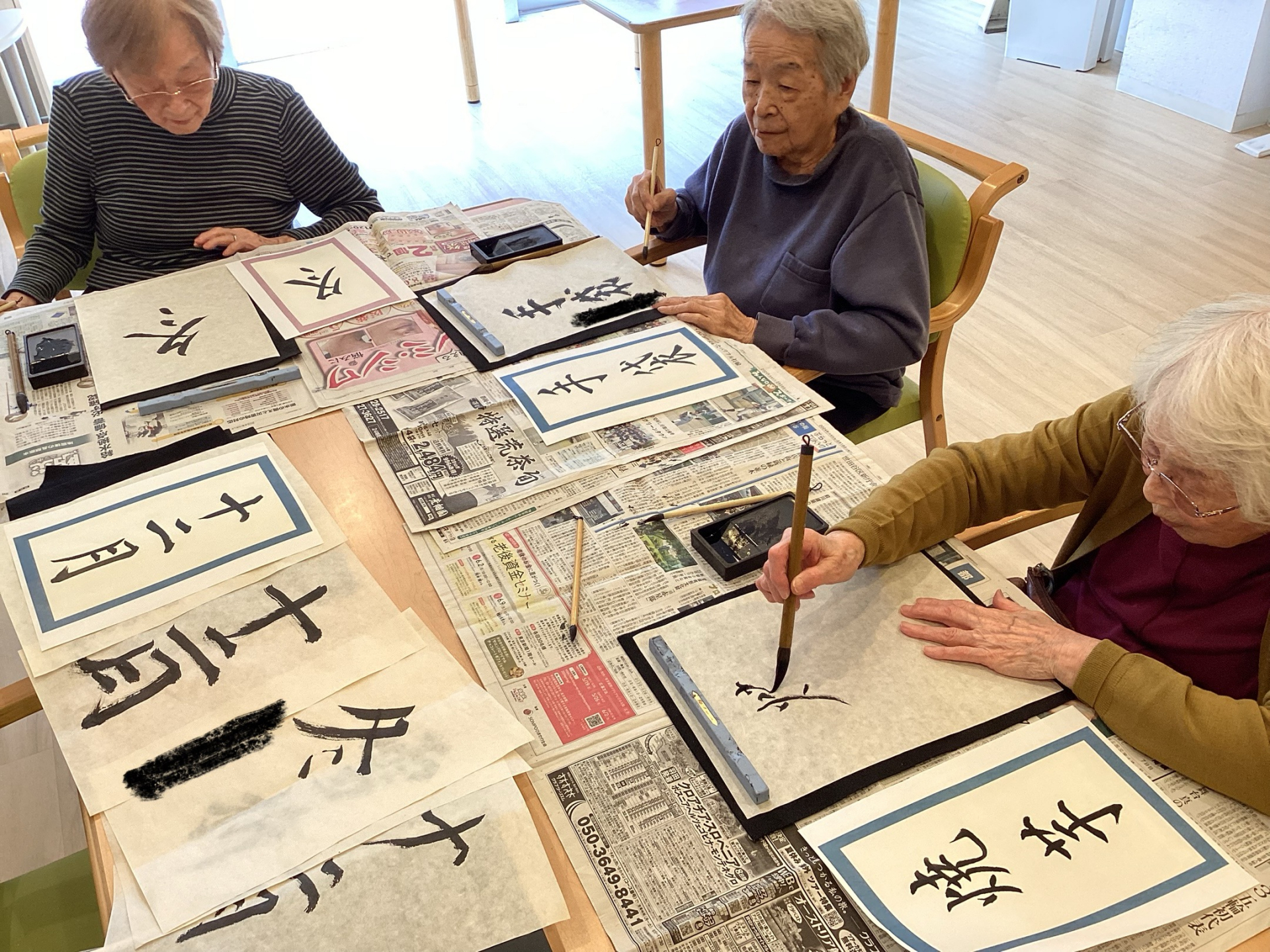 今日は習字レクリエーションをして、『冬』『焼芋』『手袋』など季節の言葉を書いて、みんなで楽しく過ごしました😊