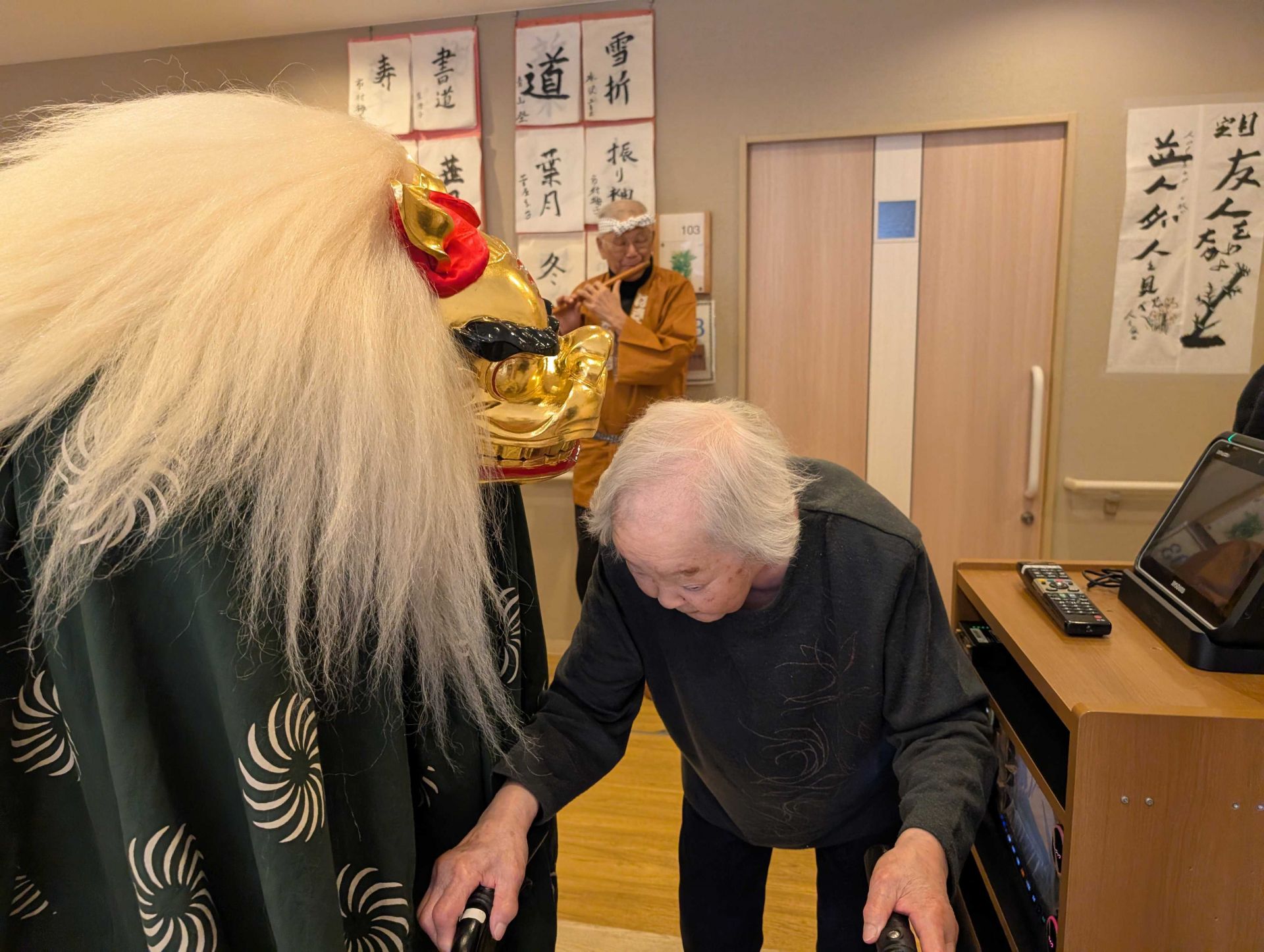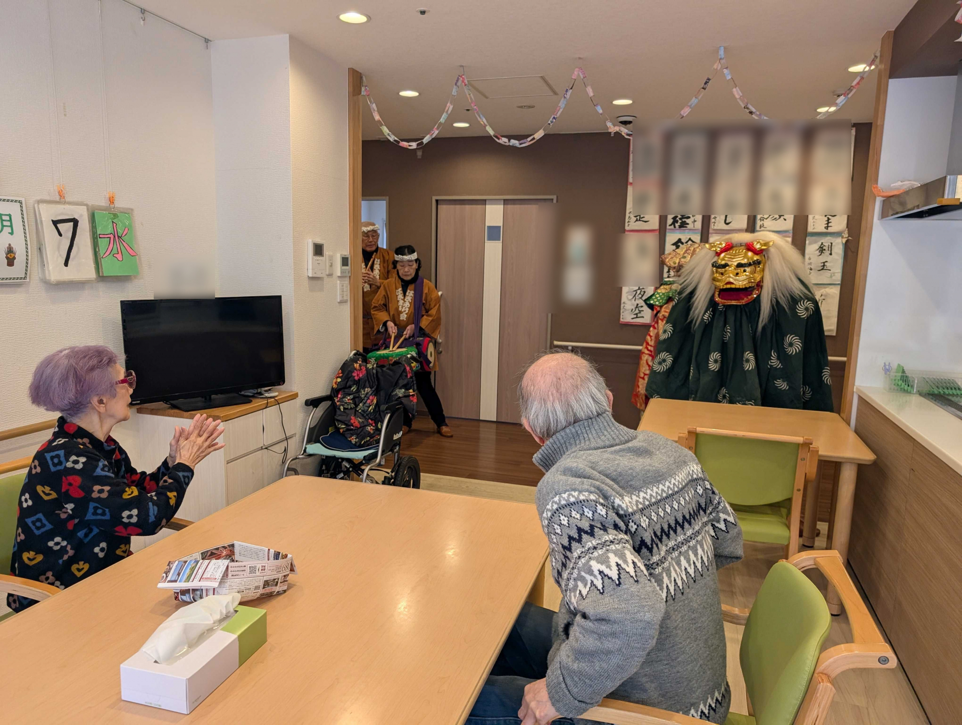 お囃子に合わせた迫力のある舞を間近で披露していただき、利用者様達も拍手喝采でした(^O^)/
