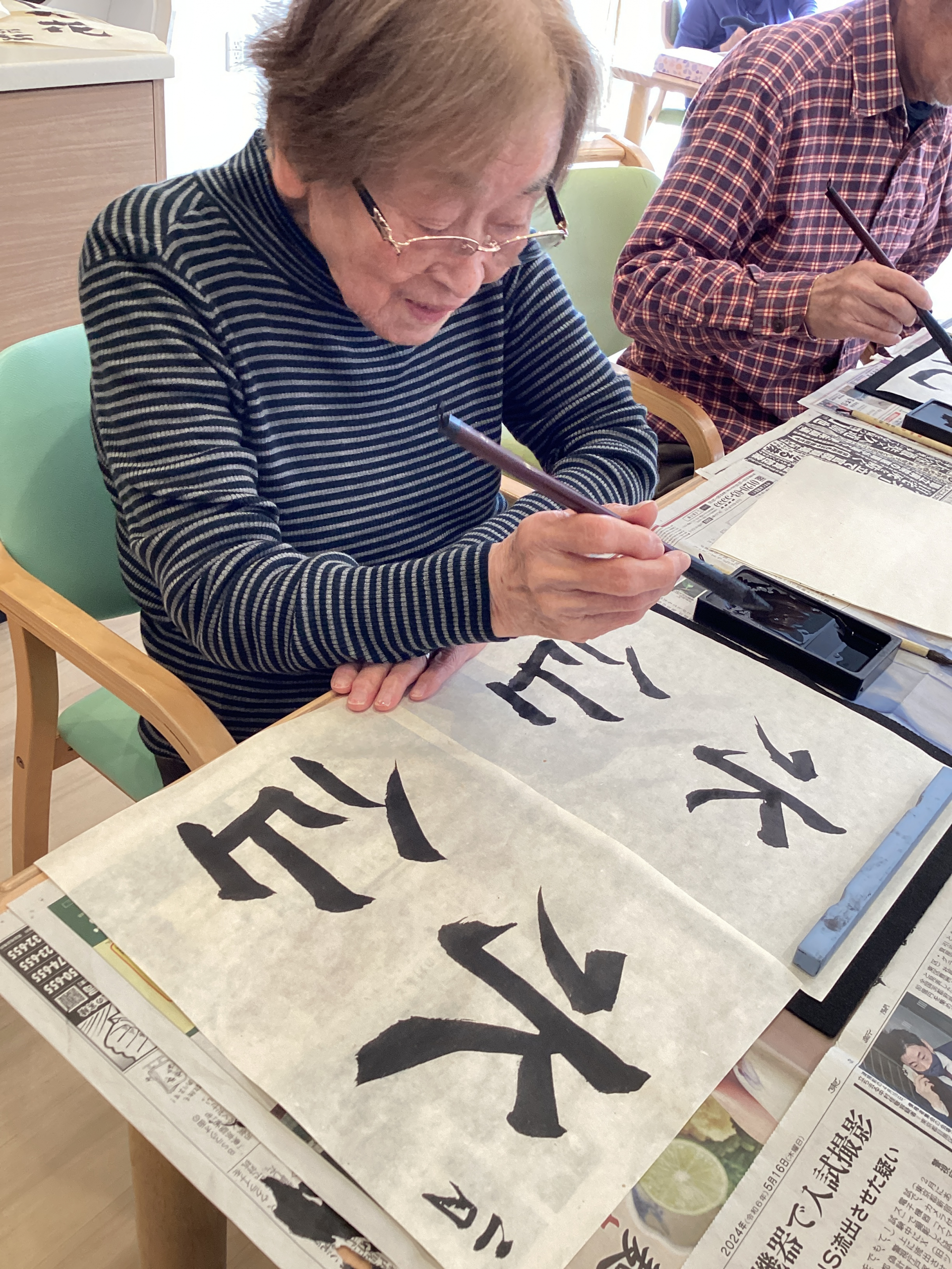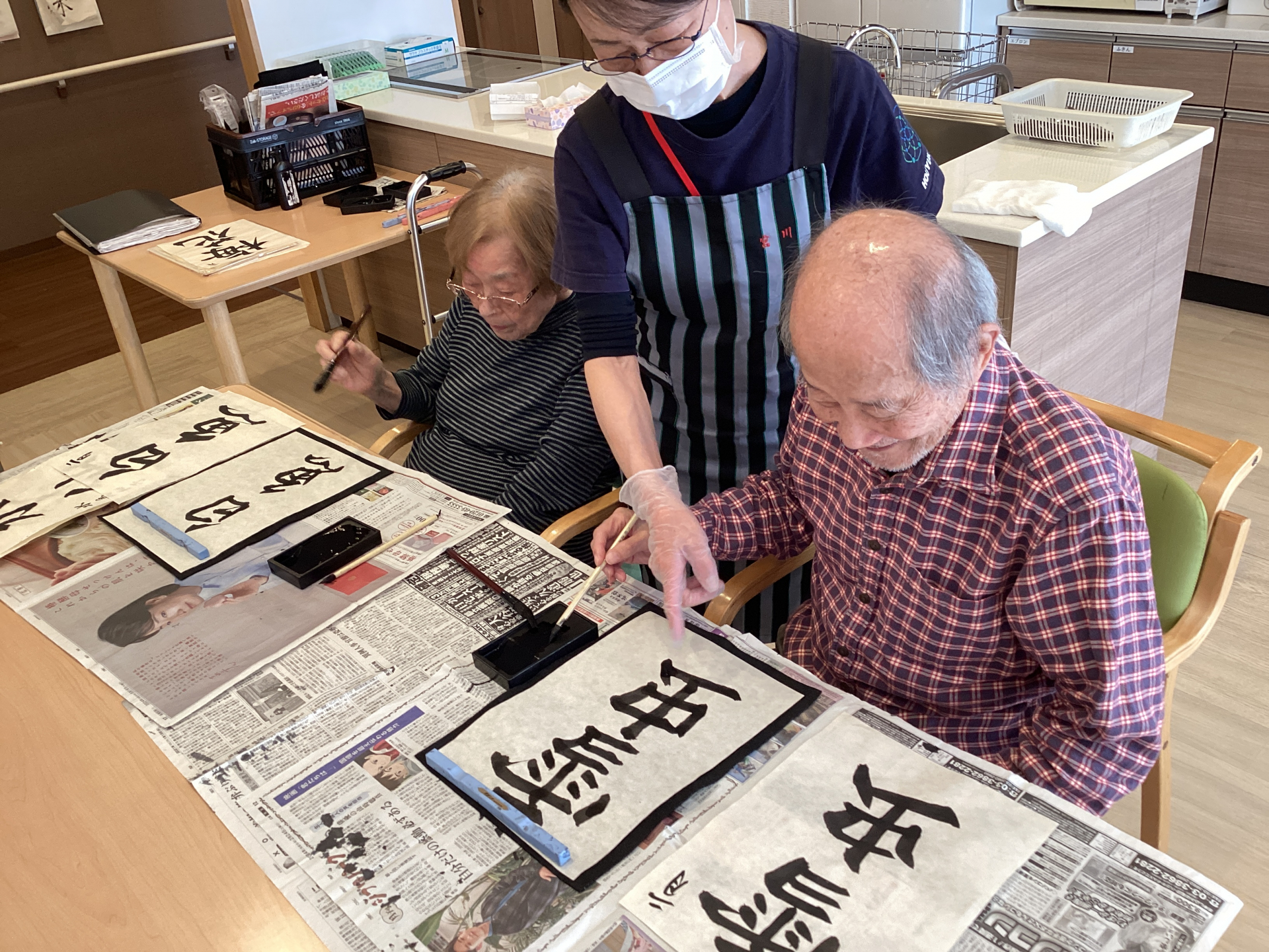 本日は習字レクリエーションを行い、皆さまとても集中して取り組まれていました。
