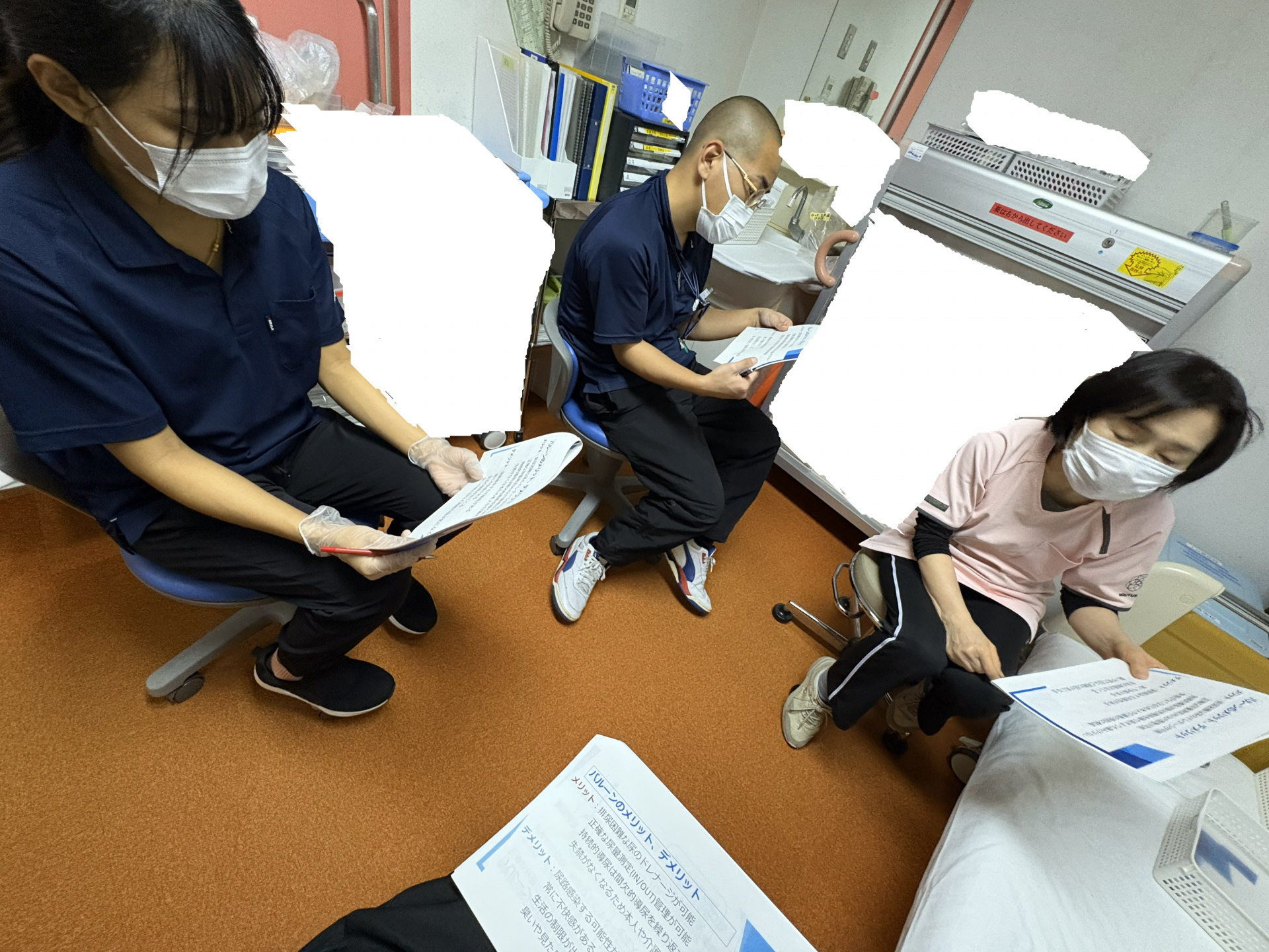 看護師が講師となり、注意点やバルーンの仕組みについて研修してくれました。