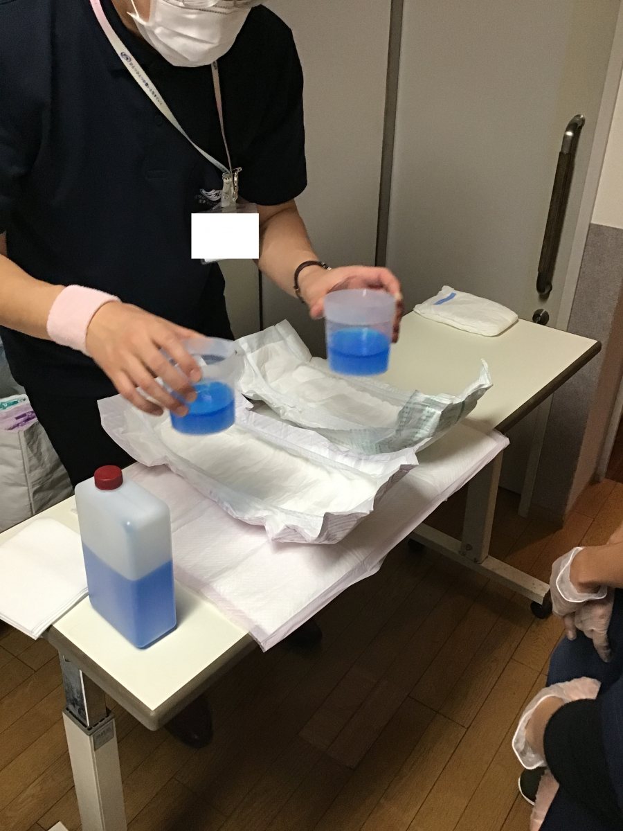 オムツを発注している業者の方に来ていただき、オムツの装着方法やオムツの仕組みについて教えて頂きました!!