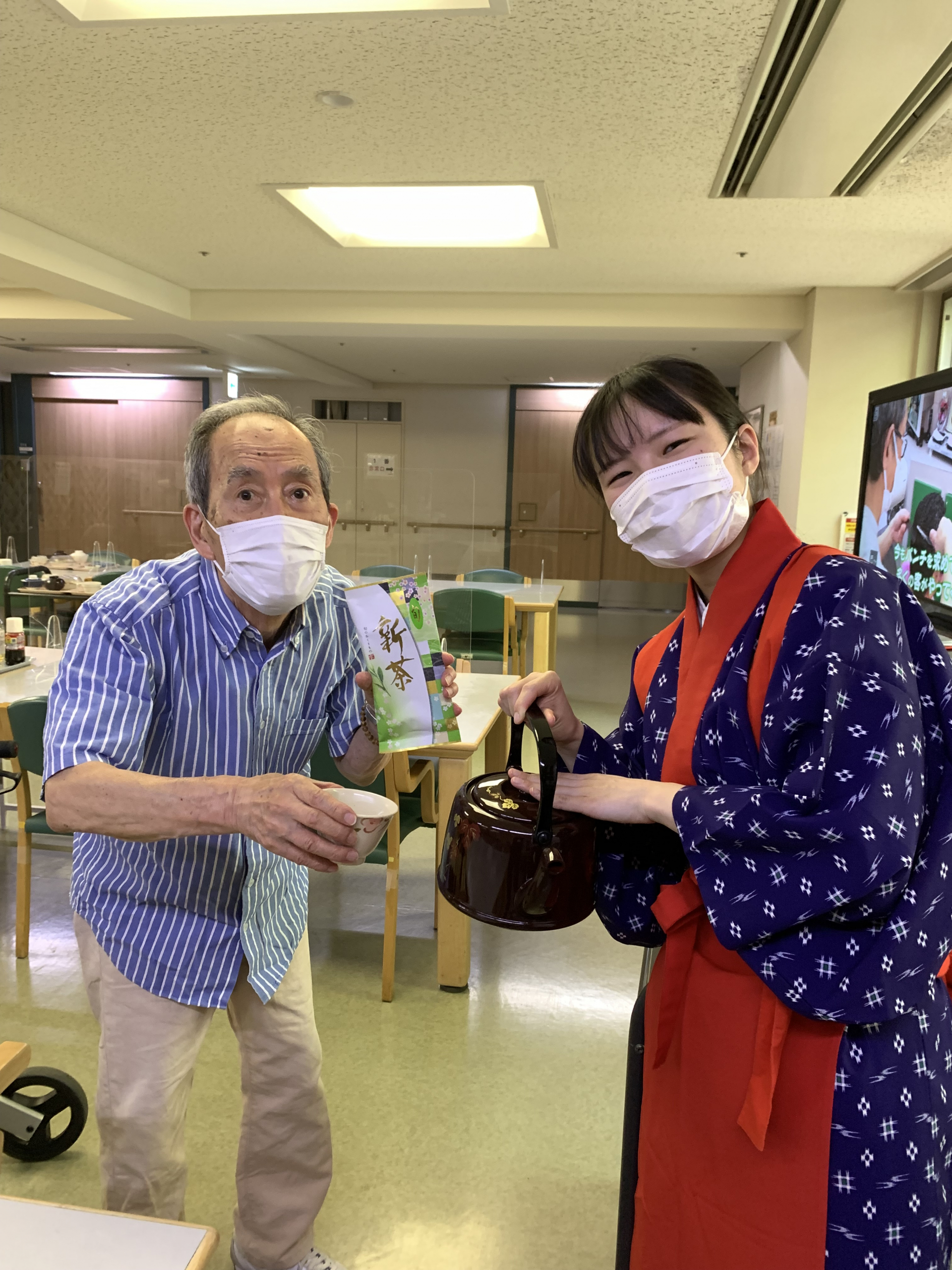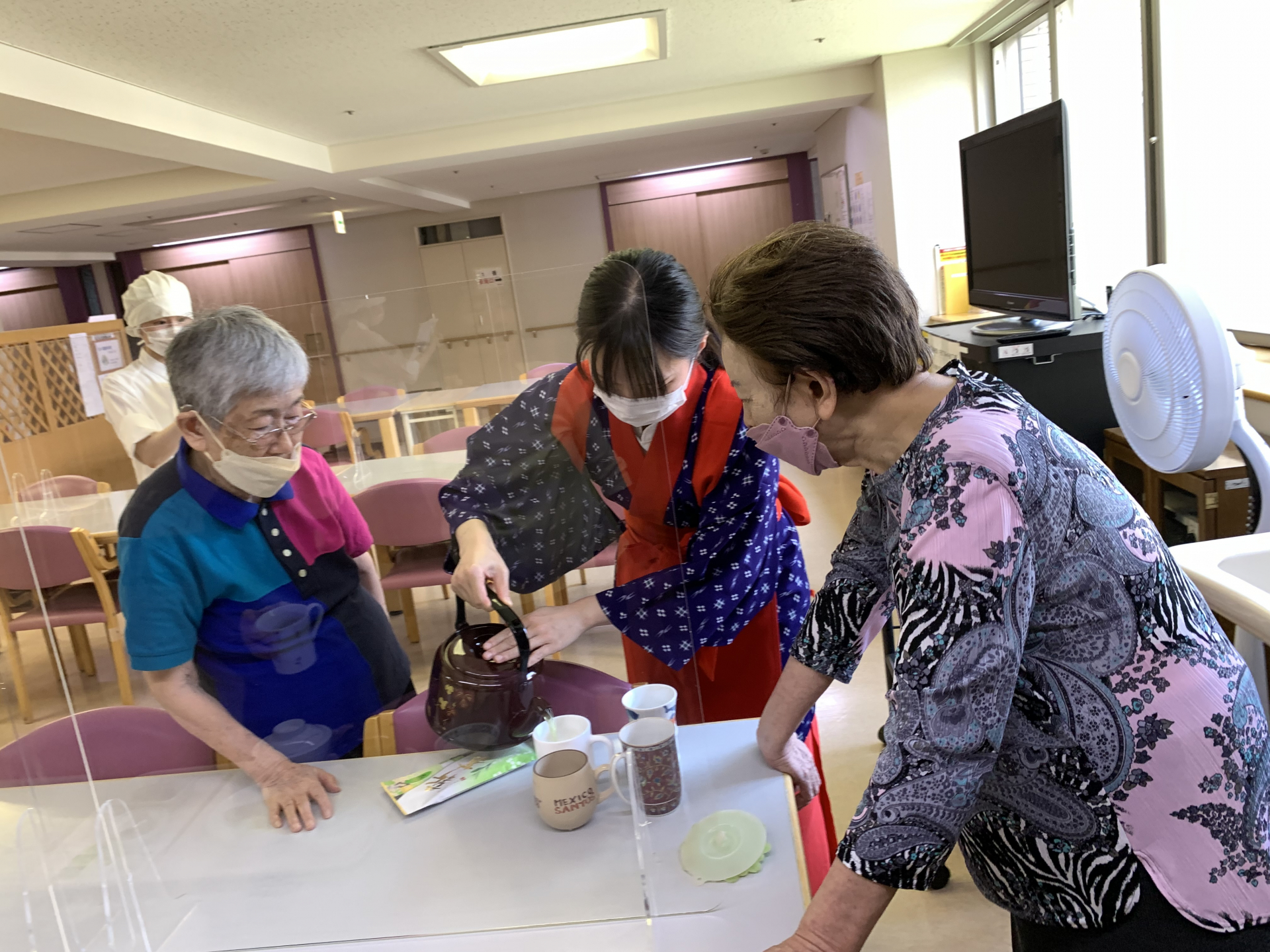 茶娘と入居者さま、職員と楽しい交流のひとときとなりました( *´艸`)