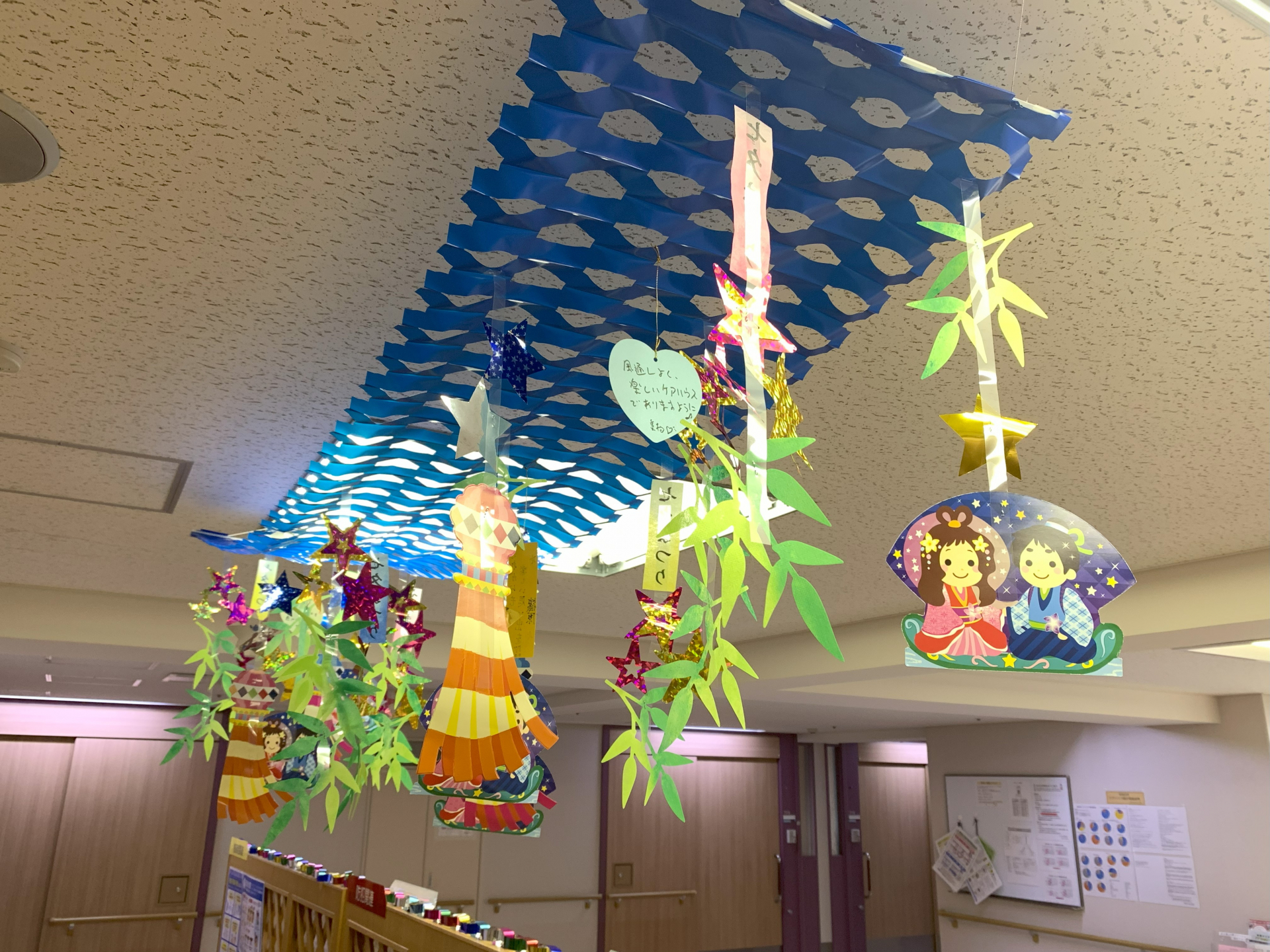 ケアハウスの各フロアにも七夕飾りが飾られています✨