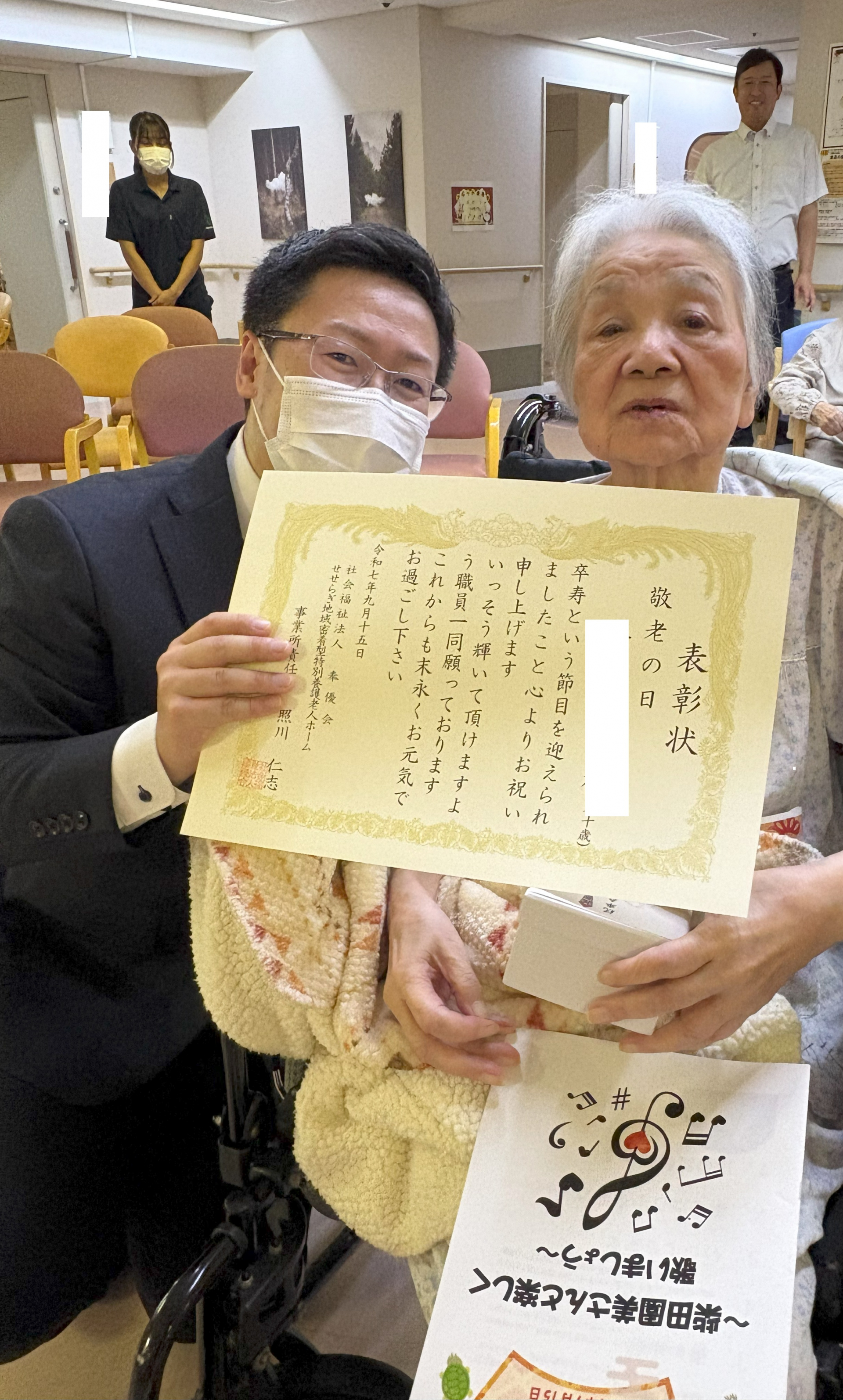 その後は、祝い年の方々、100歳以上の皆様に賞状と記念品の贈呈を致しました!