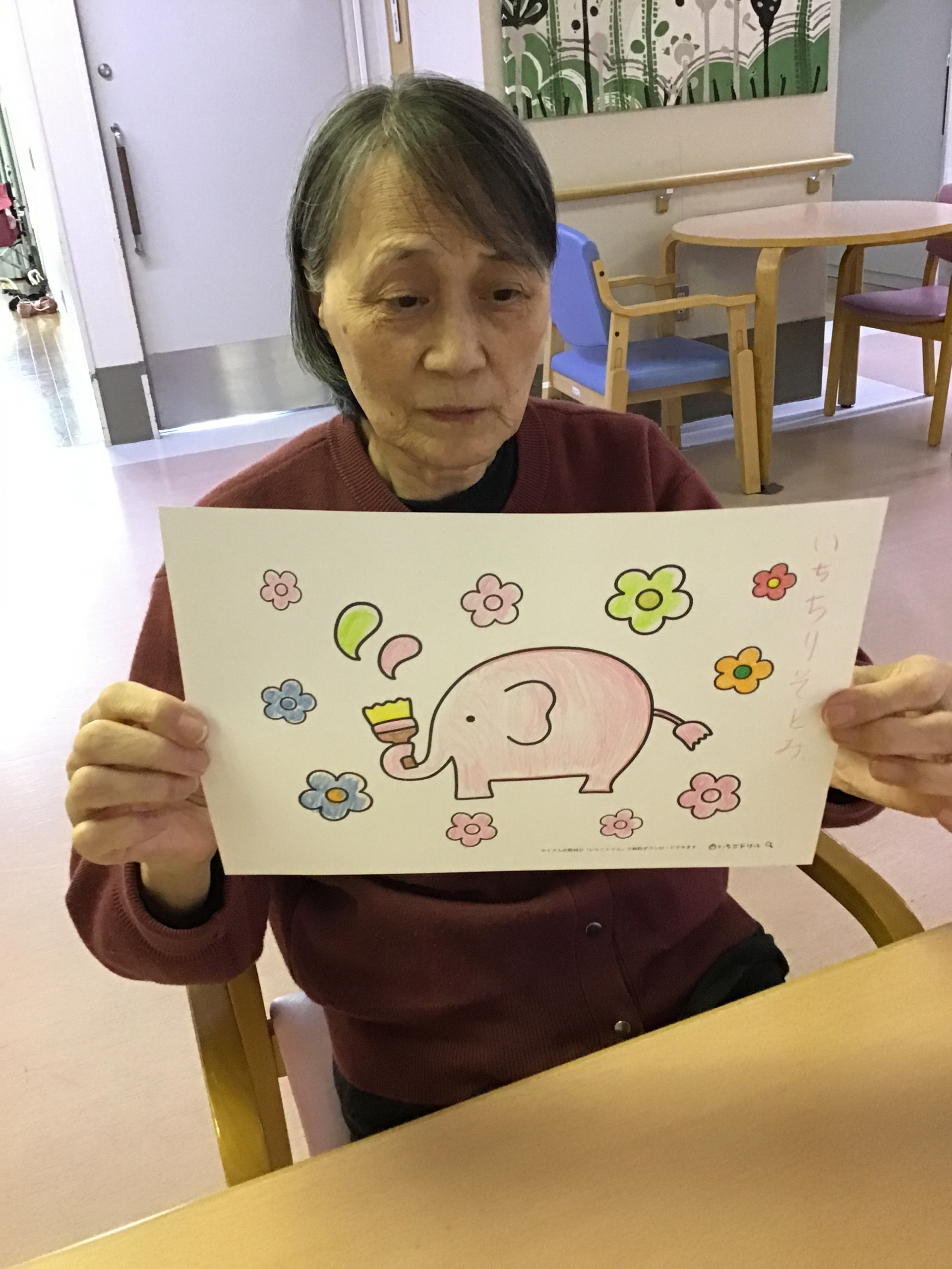 少しだけ不安になっていましたので近くにいた職員が塗り絵を提案