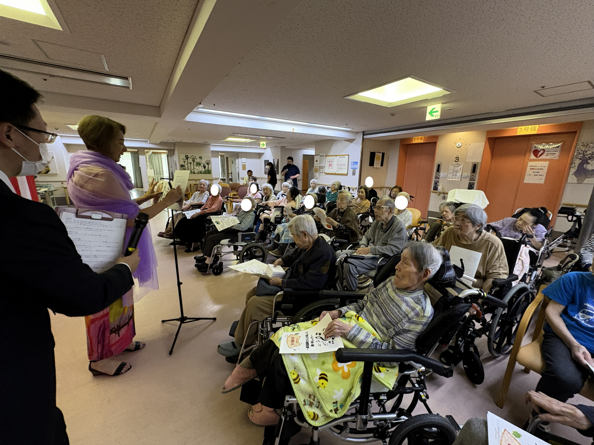 音楽ボランティアの方が来て下さり、皆様と一緒に歌ったり、体操をしたりと楽しい時間を過ごしました(^^)/