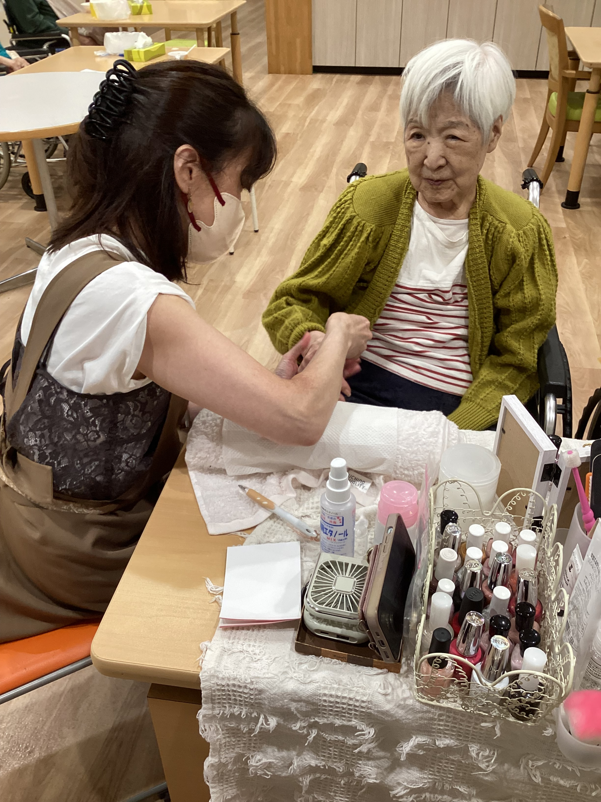 2025.09.26 活動報告 ネイルサロンが来ました‼︎ Tweet シェアする 皆さん爪を綺麗にされていました‼︎ そろそろ秋なので秋仕様ですね‼︎ 介護課 中尾祐 前の記事 2025.10.02 活動報告 3丁目ユニット 誕生日会 次の記事 2025.09.26 活動報告 【2丁目ユニット】誕生日会 一覧へ戻る