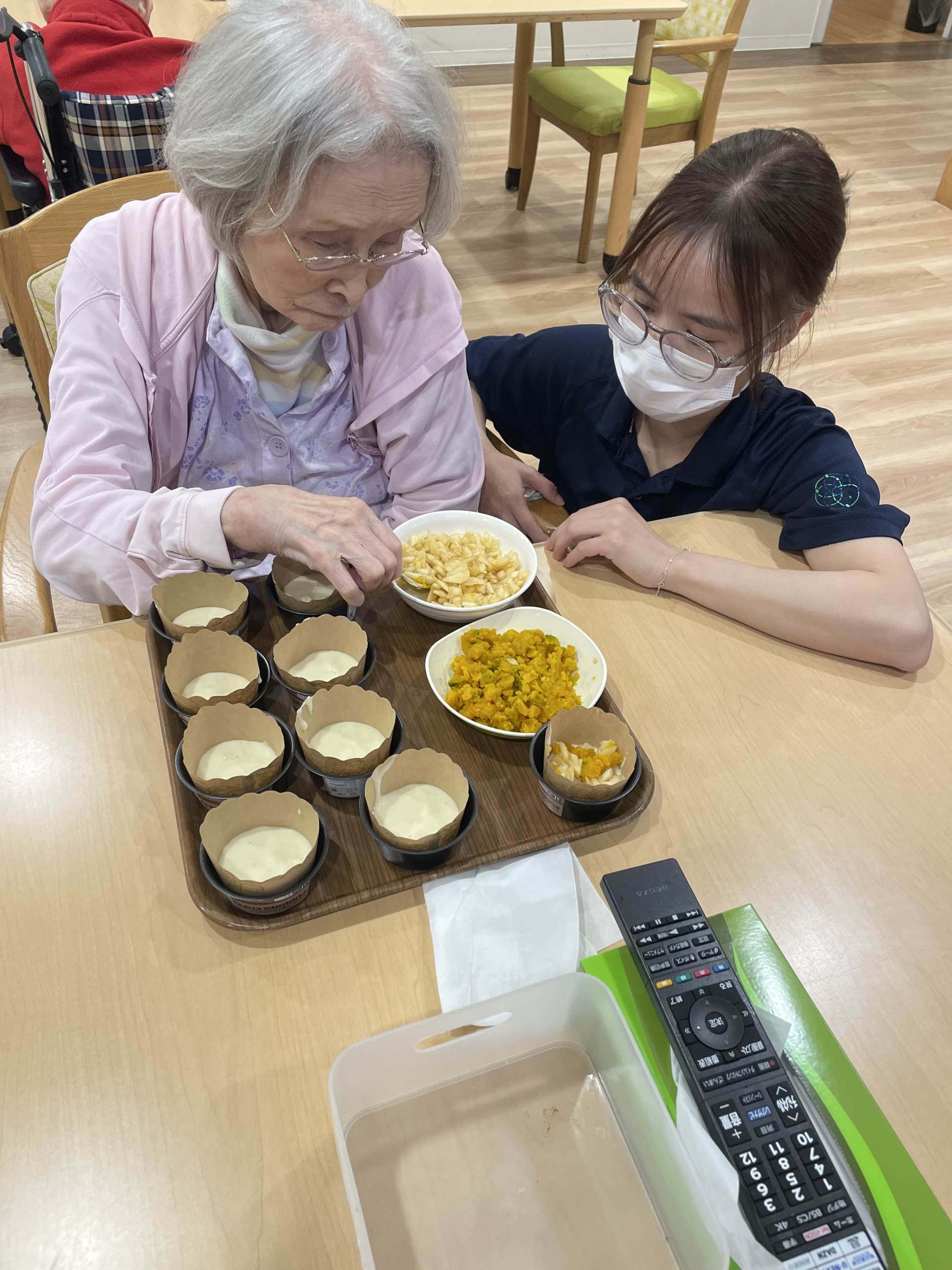 2025.10.02 活動報告 【2丁目ユニット蒸しパン作り① Tweet シェアする こんにちは♪本日は食事レクとして蒸しパン作りを行いました。 ご利用者さまそれぞれがスプーンにトッピングのかぼちゃ🎃やりんご🍎 をのせて、 和やかな会話も弾みました。2丁目ユニット 荻野 前の記事 2025.10.04 活動報告 4丁目ユニット 次の記事 2025.10.02 活動報告 3丁目ユニット 誕生日会 一覧へ戻る