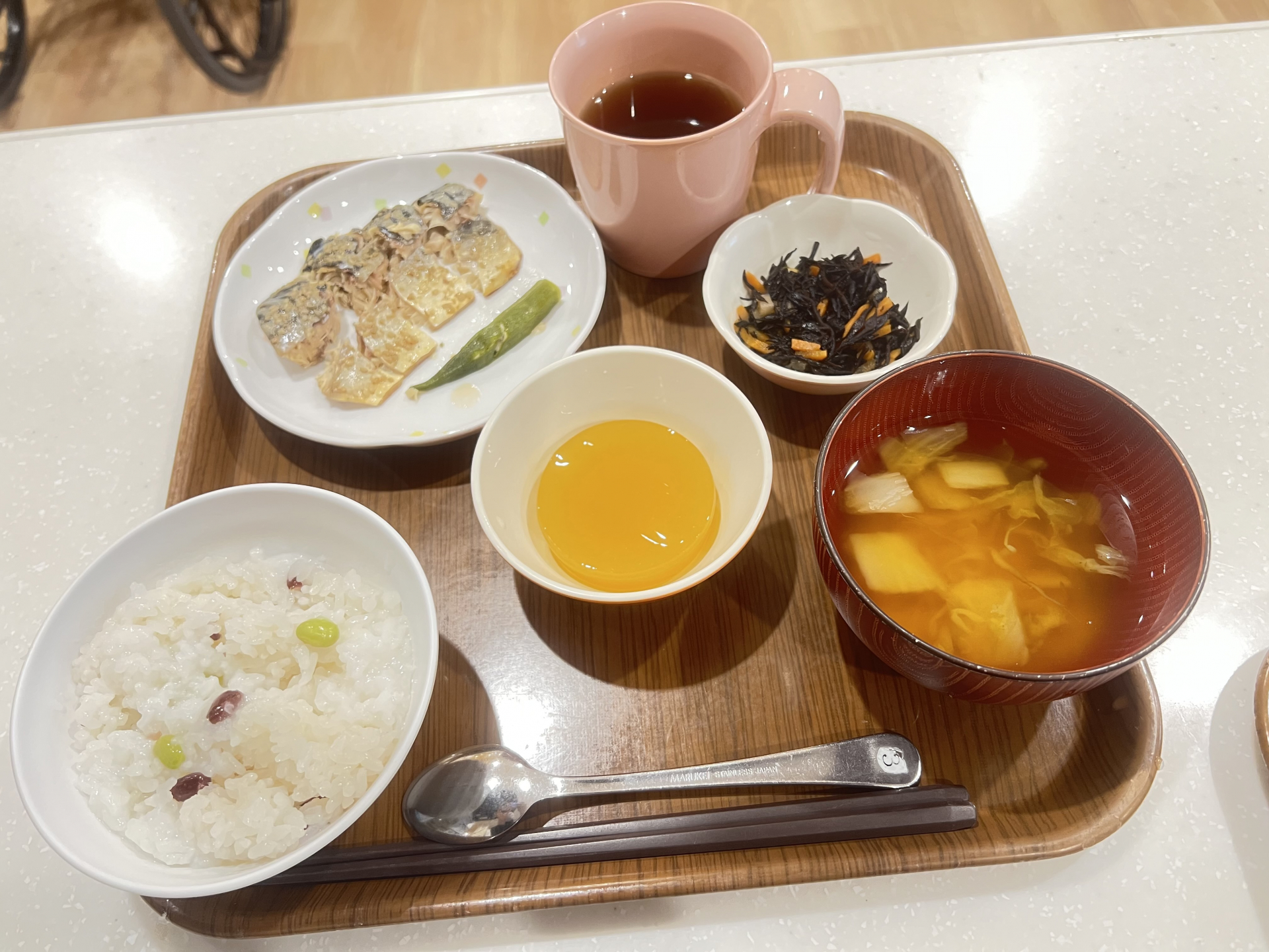 南部焼きサバ、ひじきとかんぴょうの煮物、味噌汁:白菜、もやし、フルーツゼリーもありました。