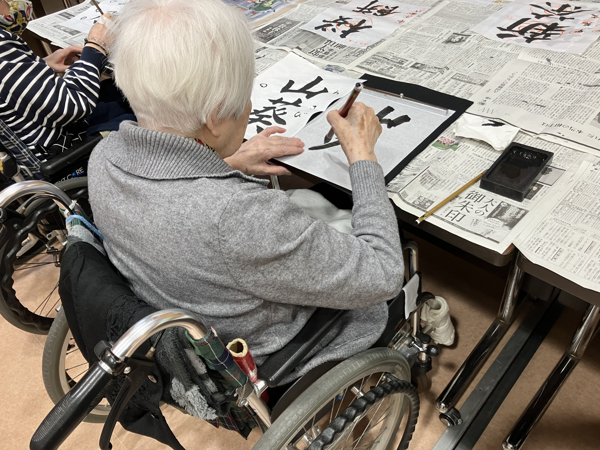白金の森では、書道ボランティアの方が来られ、書道をお好きな方が参加されます。