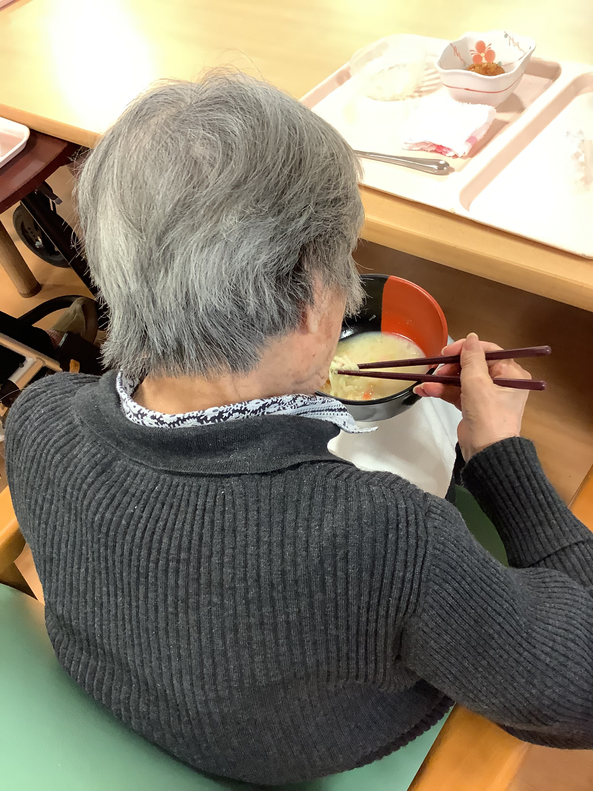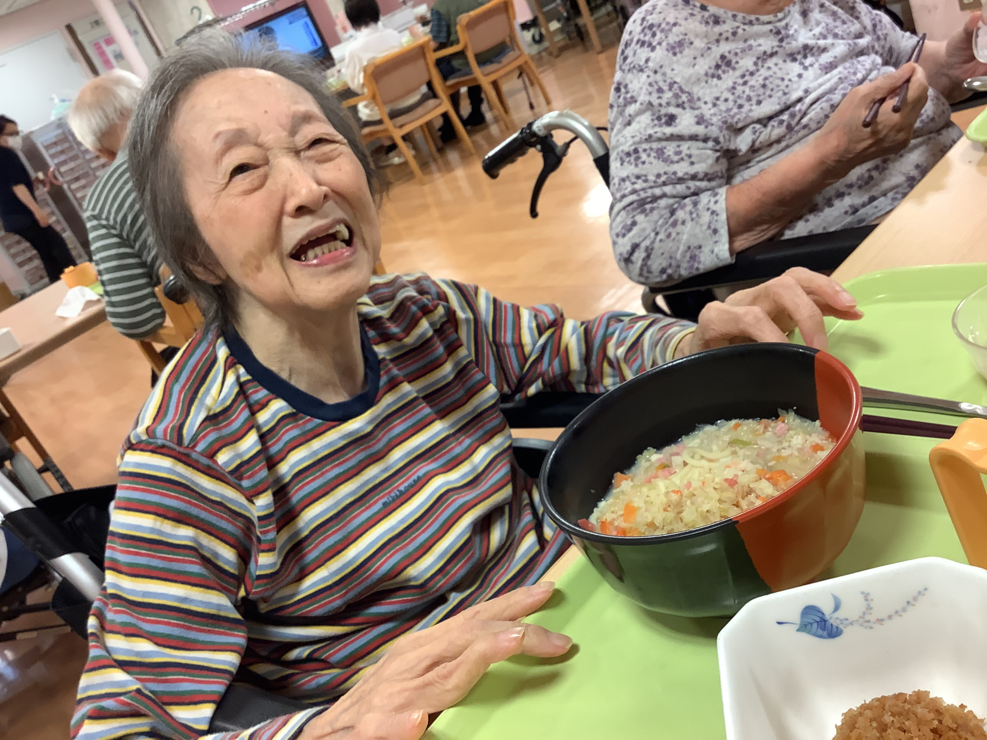 入居者様が美味しそうに麺をすすって召し上がる姿を見て、目が釘付けになりました(^^♪